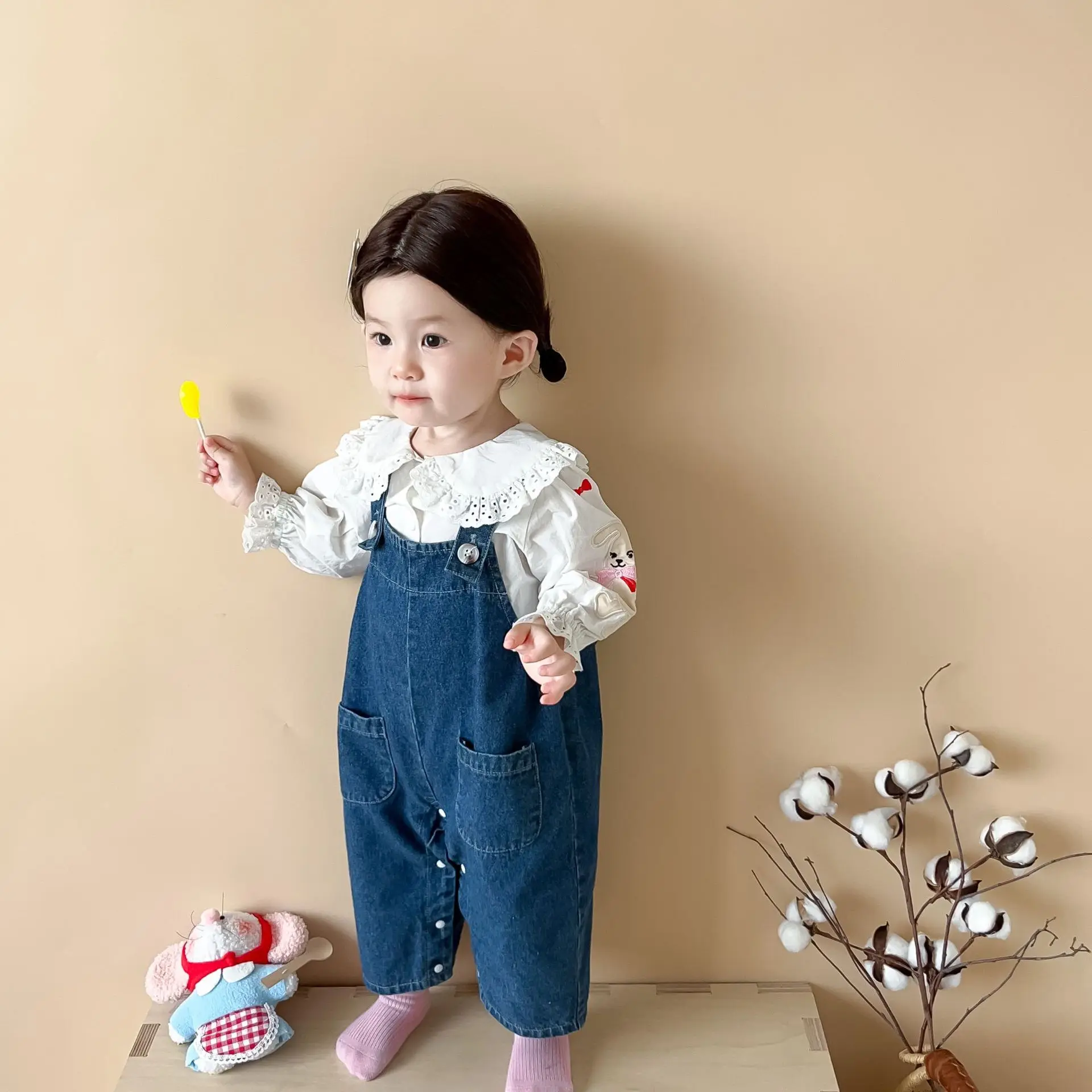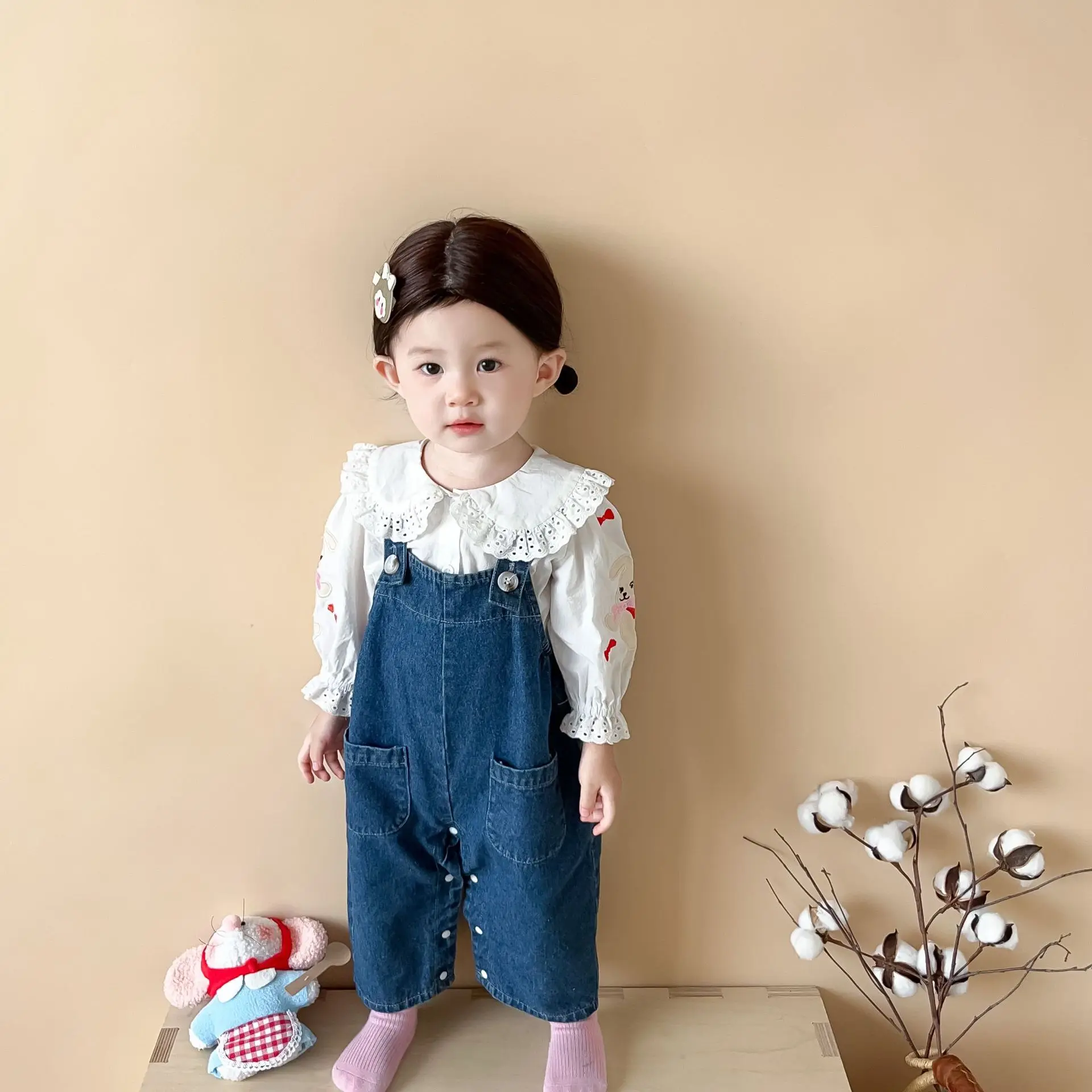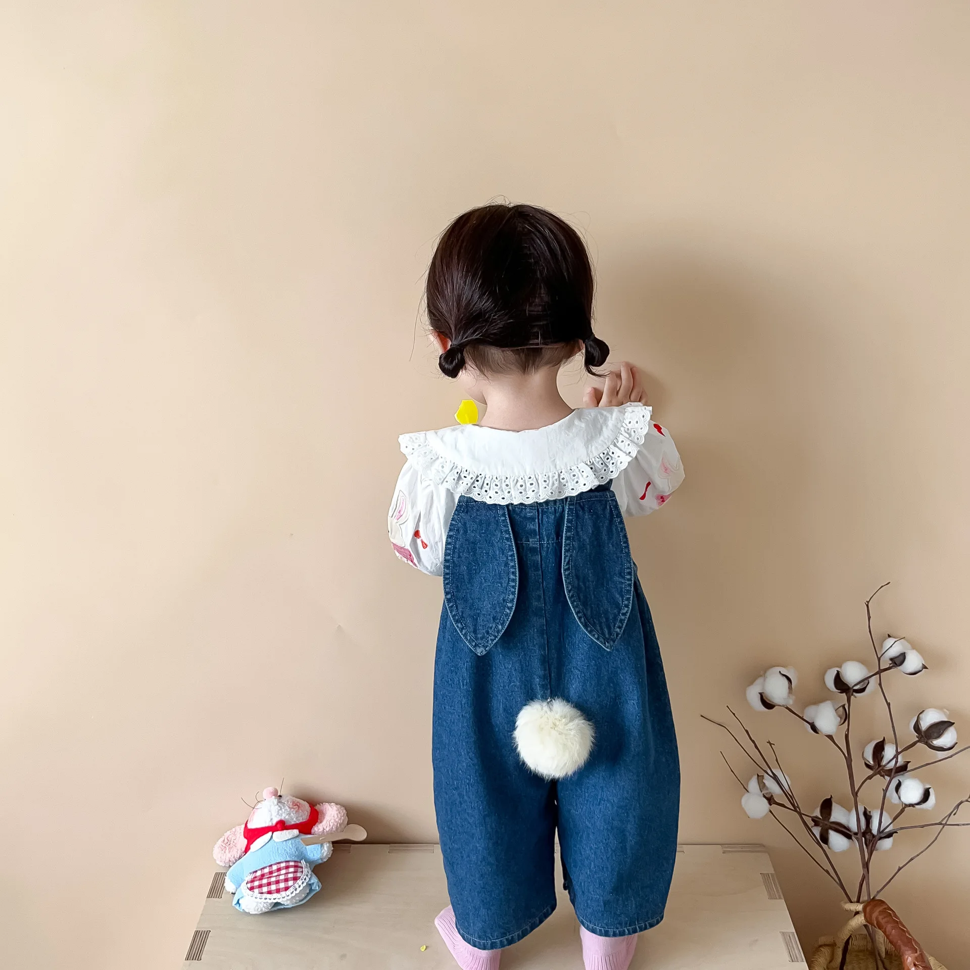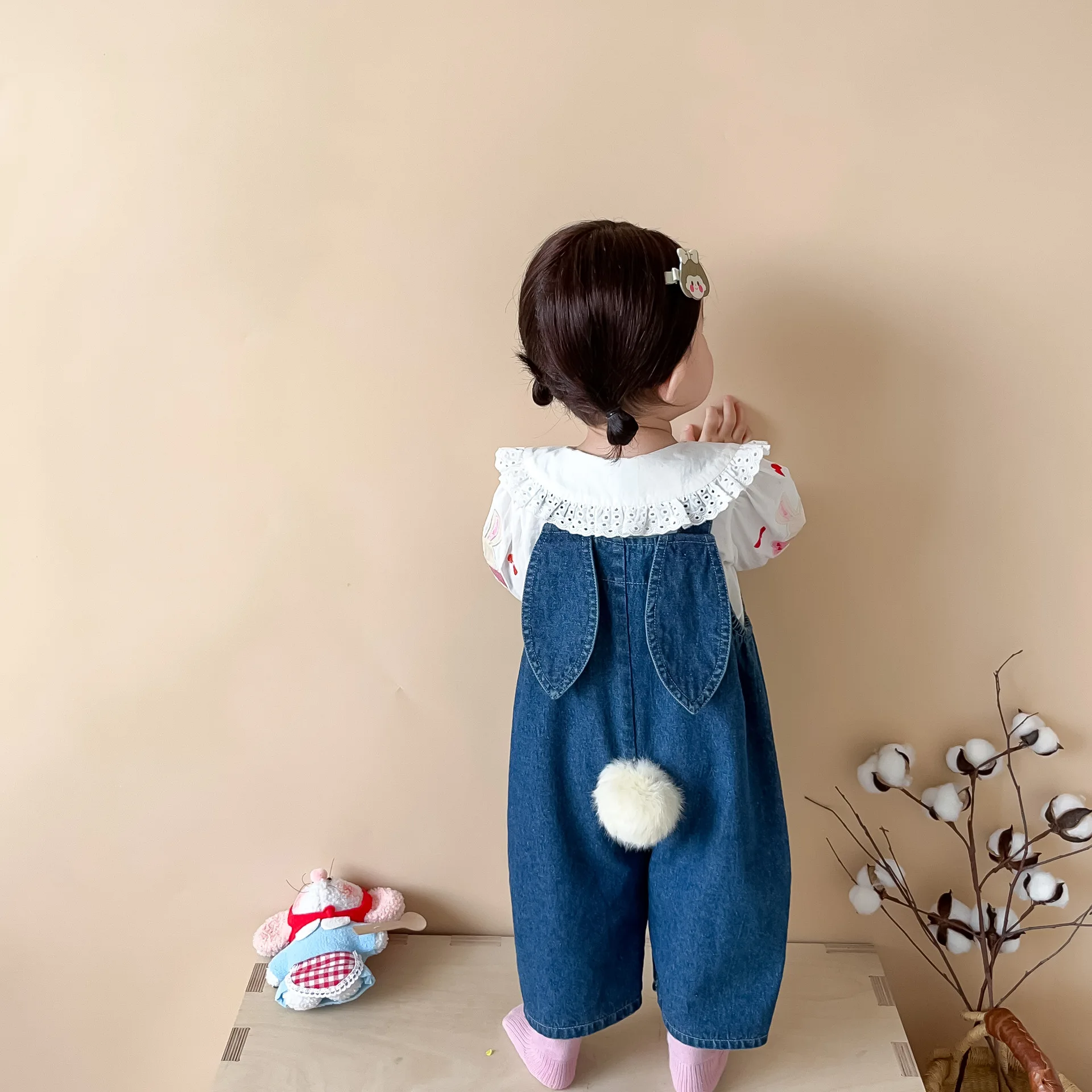 2025 Autumn New Baby Girl Sleeveless Denim Jumpsuit Toddler Girl Cute Rabbit Ear Overalls Infant Romper Kids Clothes 0-24M