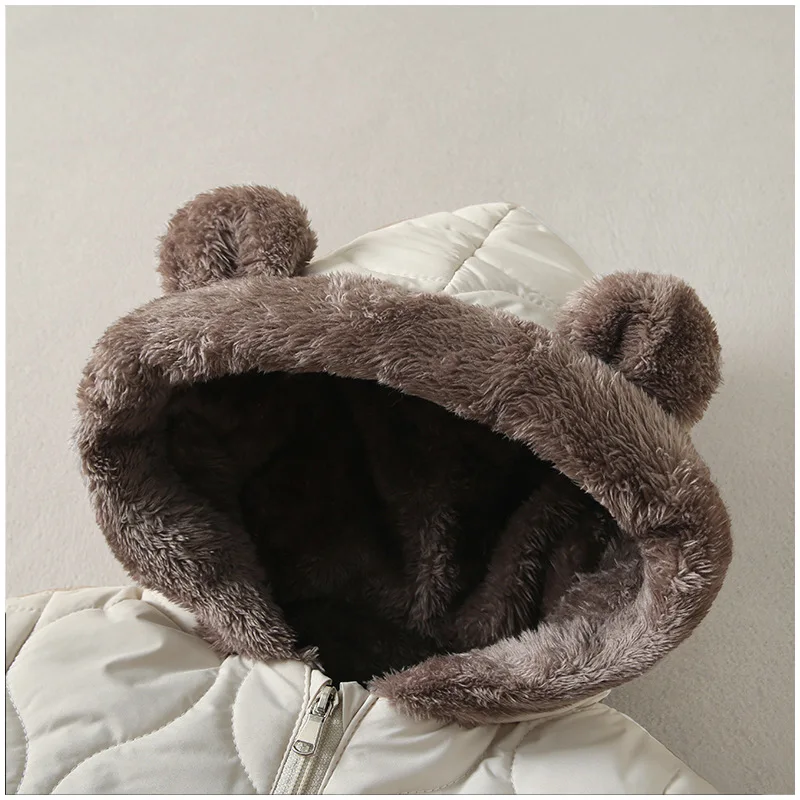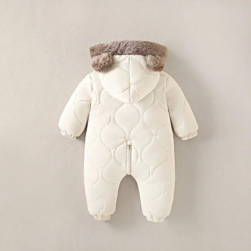 2025 Winter New Baby Boys Girls Bodysuit Solid Color Plus Velvet Thick Jumpsuits For 6M-3Y Kids Warm Hooded Rompers Snowsuit