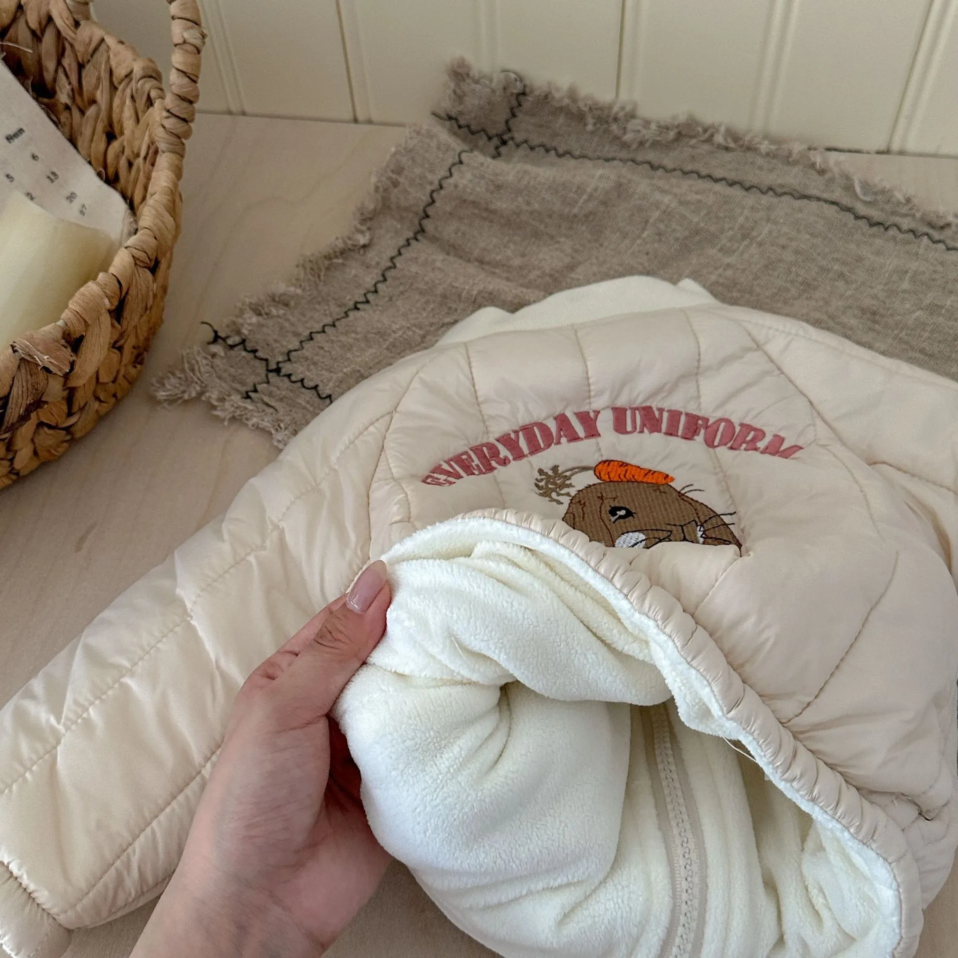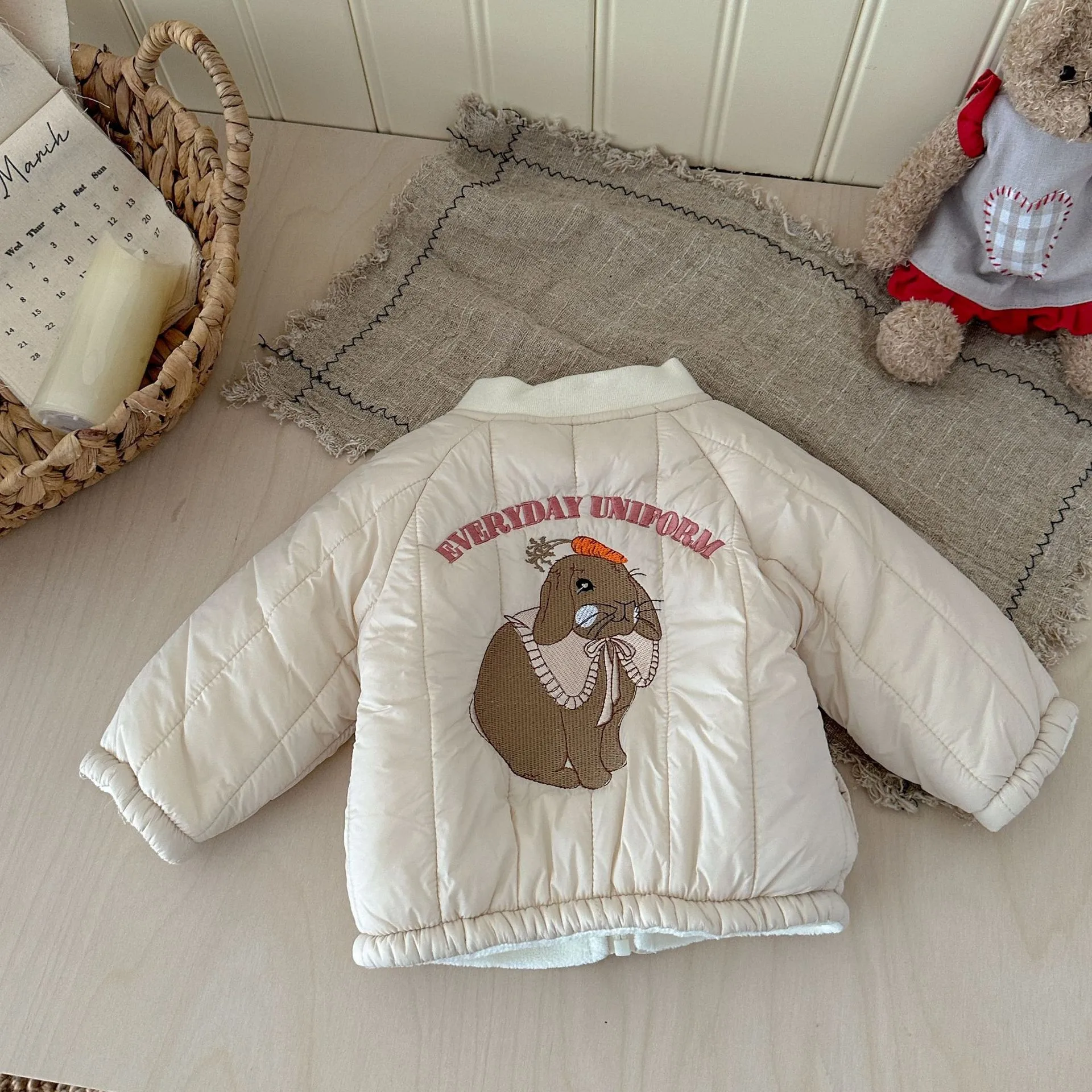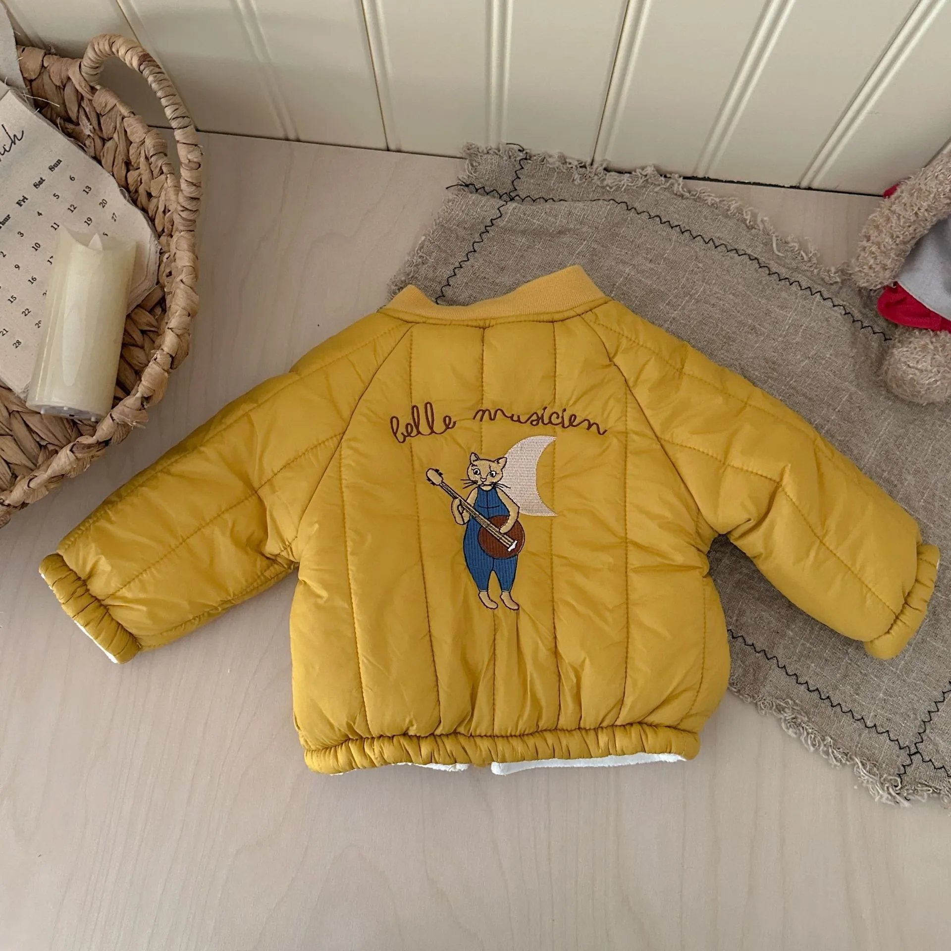 2025 Winter New Baby Fleece Warm Coat Cartoon Embroidery Boys Girls Cotton Padded Jacket Plus Velvet Thick Kids Quilted Jacket