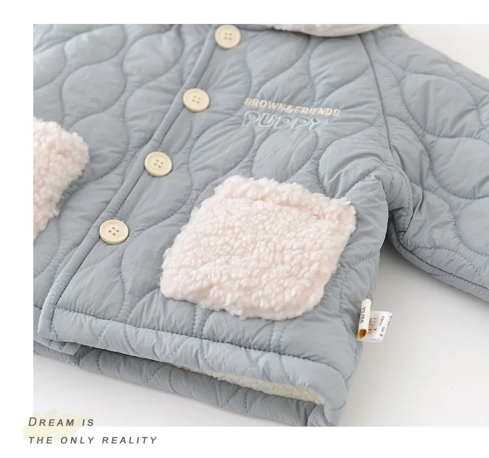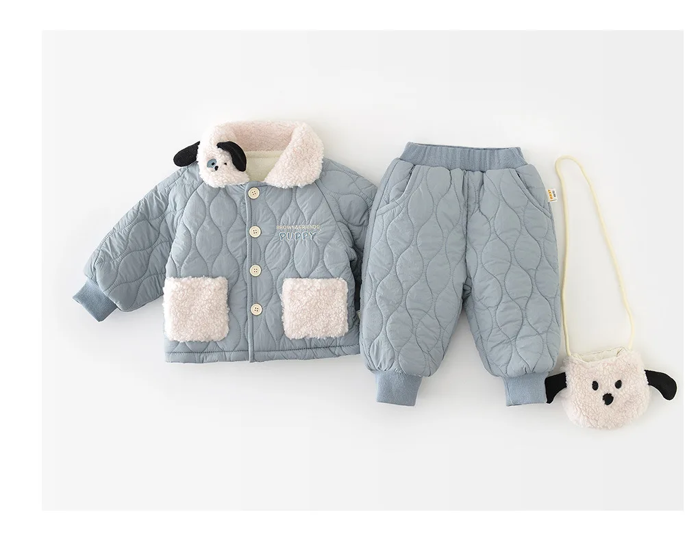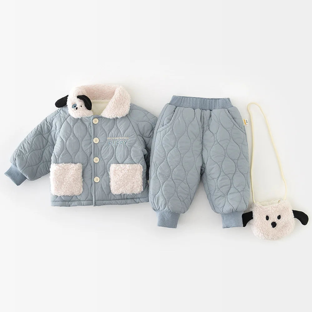 2025 Winter New Baby Warm Clothes Set Boys Girls Cute Lapel Padded Jacket + Pants 2pcs Suit Plus Velvet Thick Infant Outfits