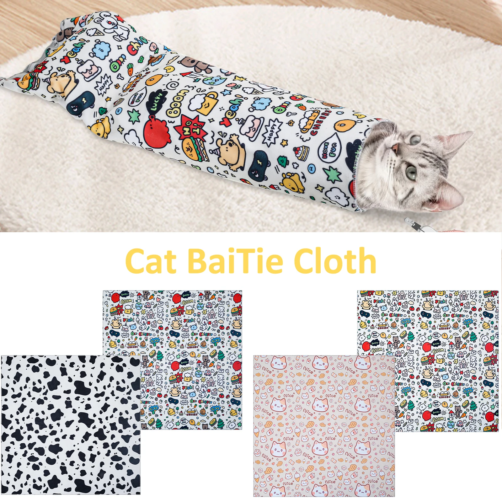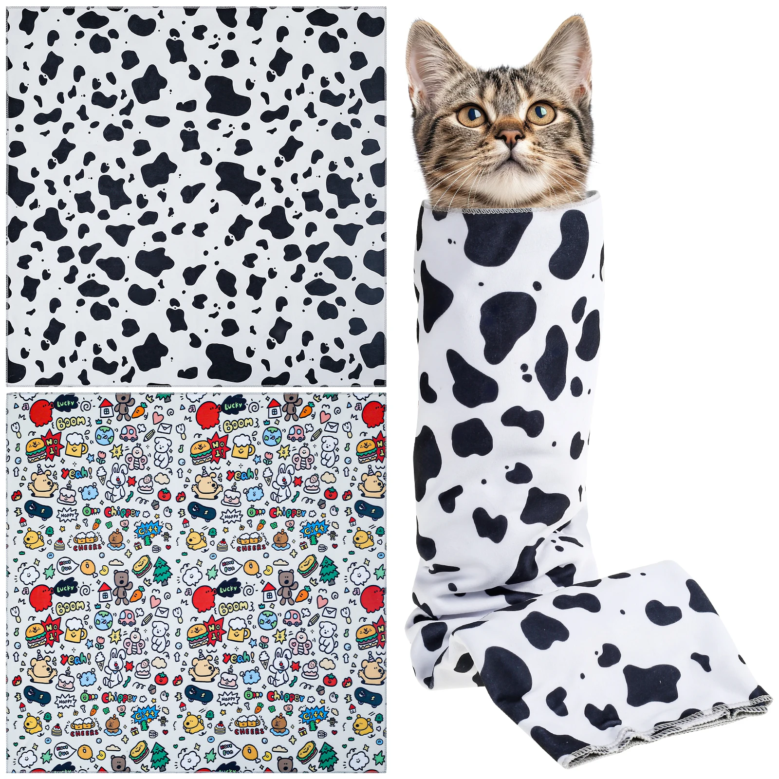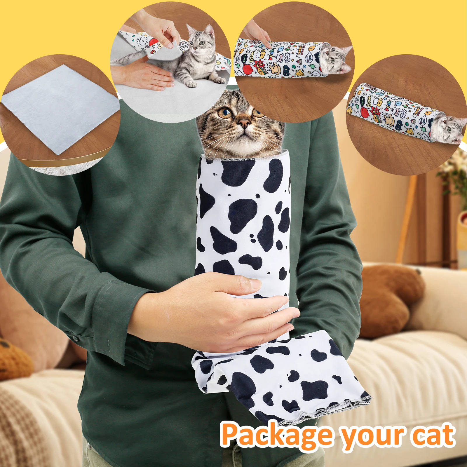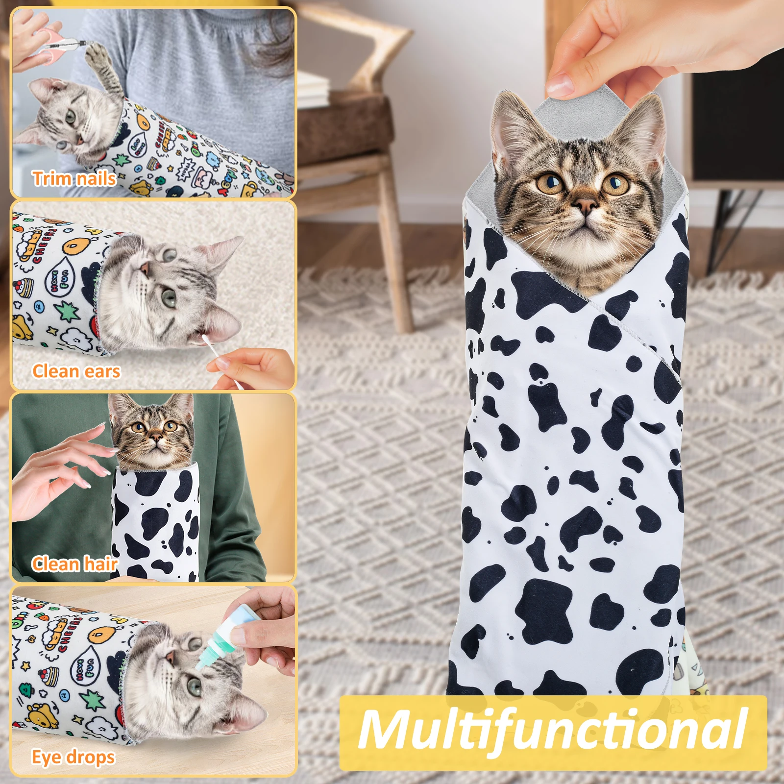 2Pcs Cat Restraint Wrap Nylon Self-Adherent Cat Grooming Wrap With Cartoon Print Anti Escape Anti Scratch Cat Nail Cutting Wrap