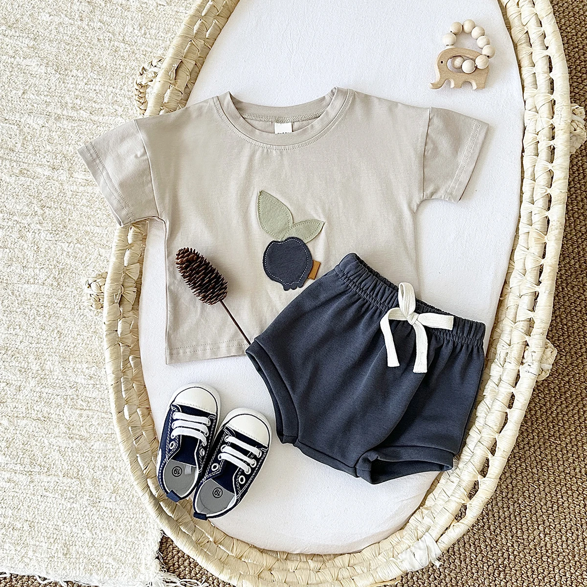 2Pcs Set Baby Boy Girl Clothing Toddler Baby Summer Clothes Blueberry Patch T-shirt+Shorts Newborn Boy Girl Summer Outfits
