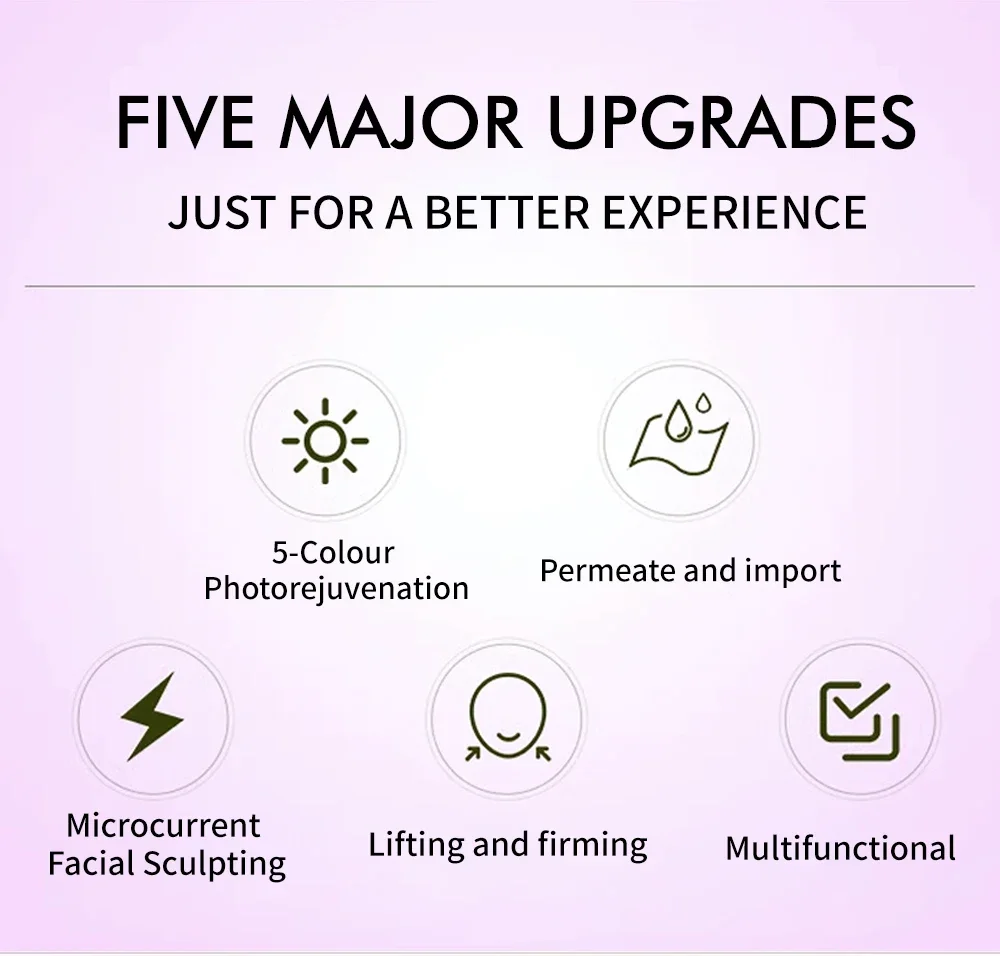 4D Massage Head Home Use Facial Device EMS 5 in 1 Facial Massager Promote Face Cream Absorption 5 Light Color Modes Beauty Tools