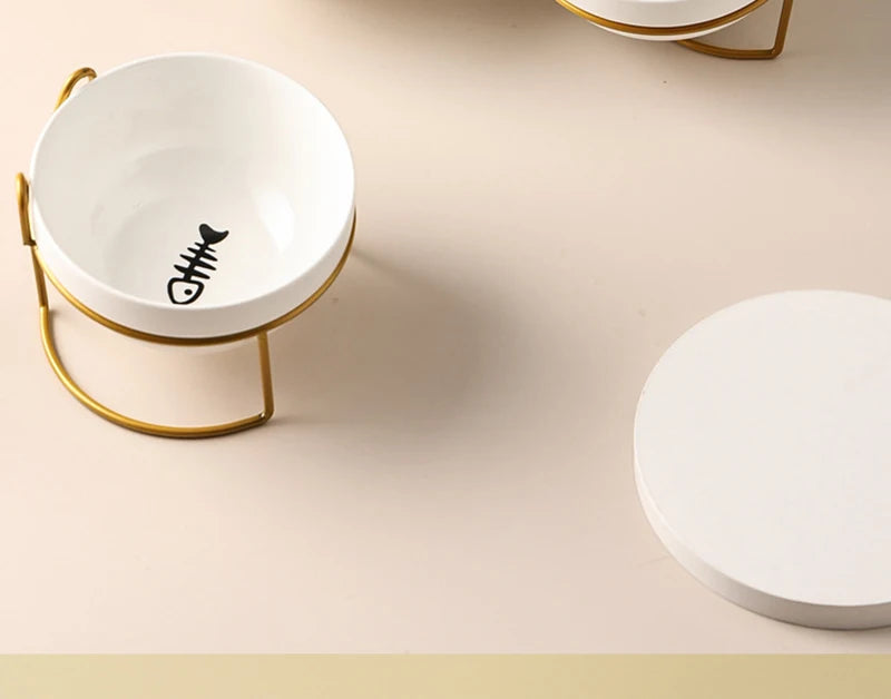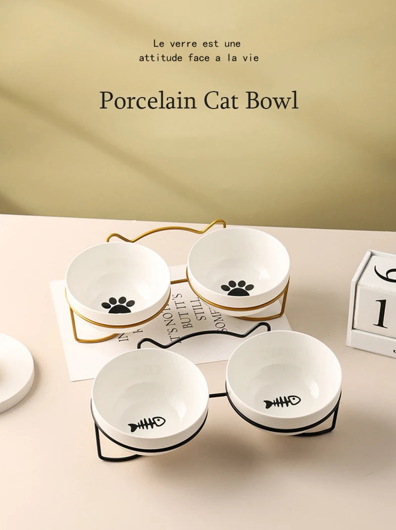 500ML Pet Ceramic Bowl Kitten Puppy Ceramic Bowl Water Feeder Cat Food Feeding Dish Dispenser with Raised Stand Cat Accessories