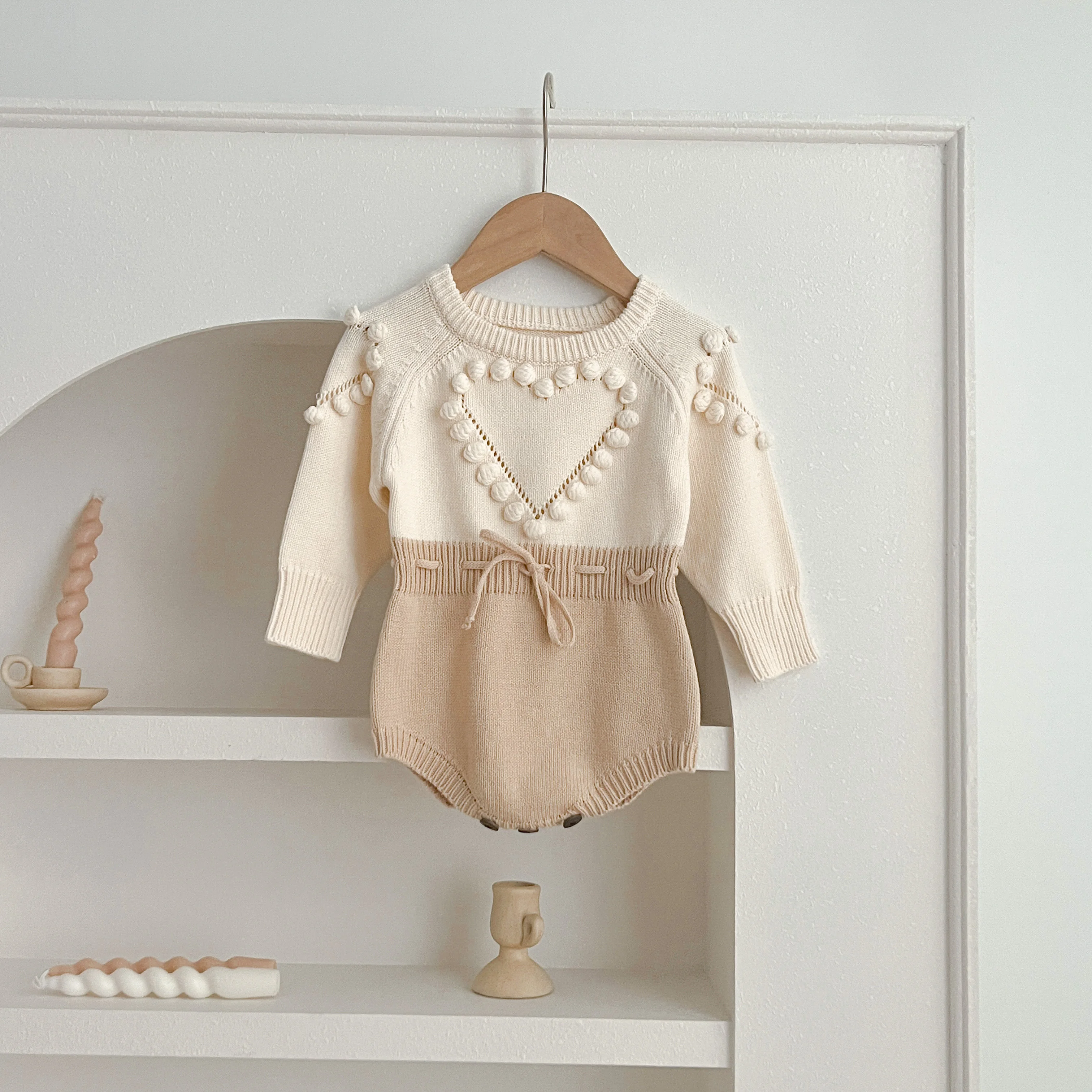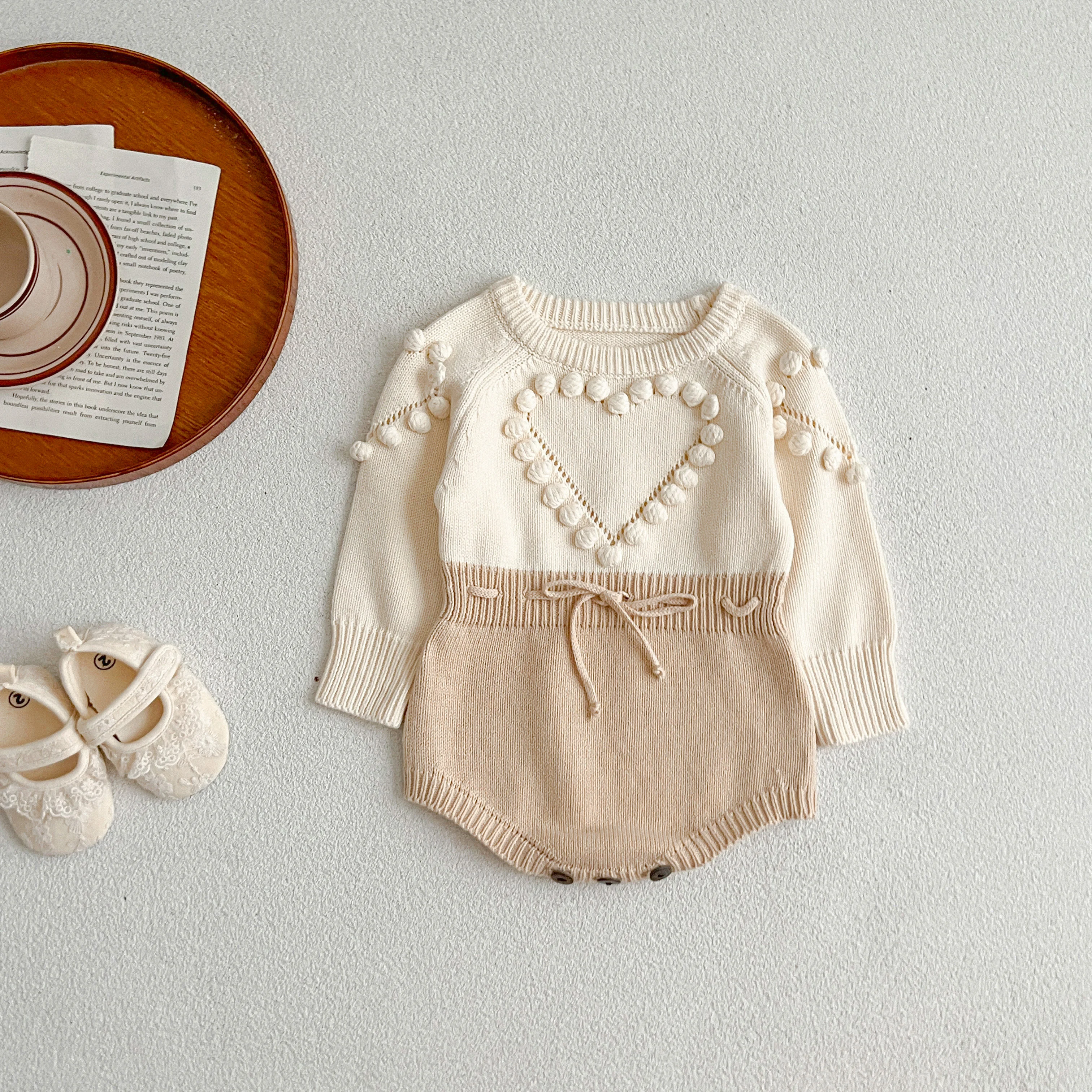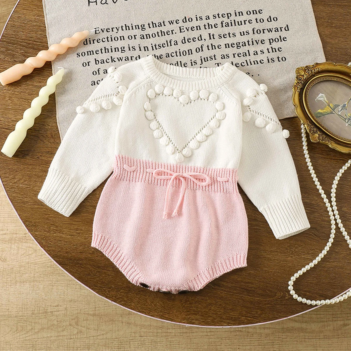 Autumn Lovely Heart Jumpsuit Infant Baby Girl Knitted Clothes Love Romper Bodysuit Outfit Spring Cotton Knitted Sweater Bodysuit