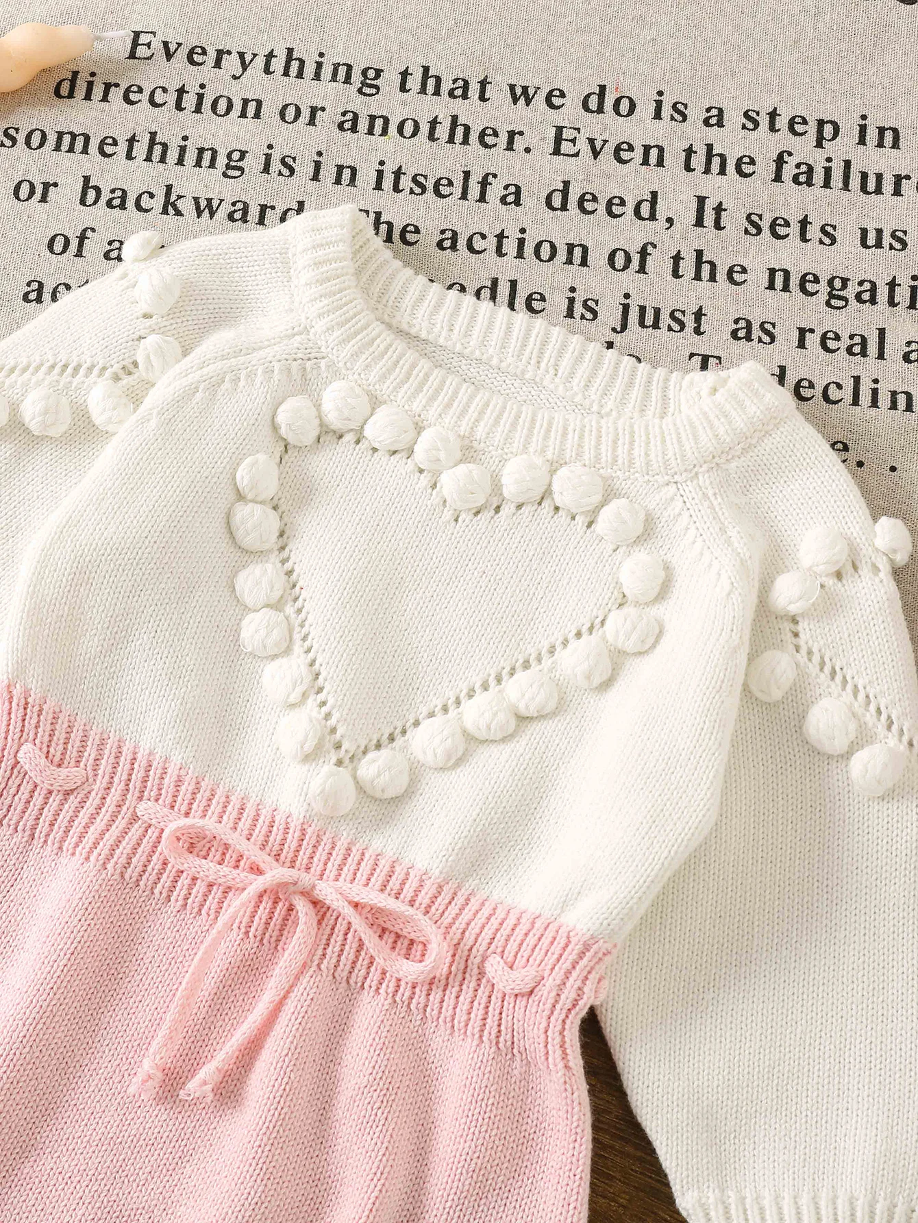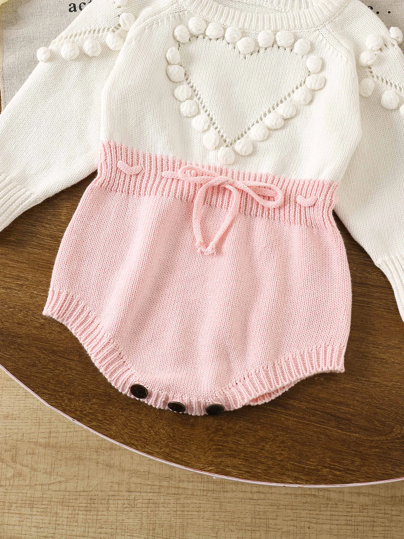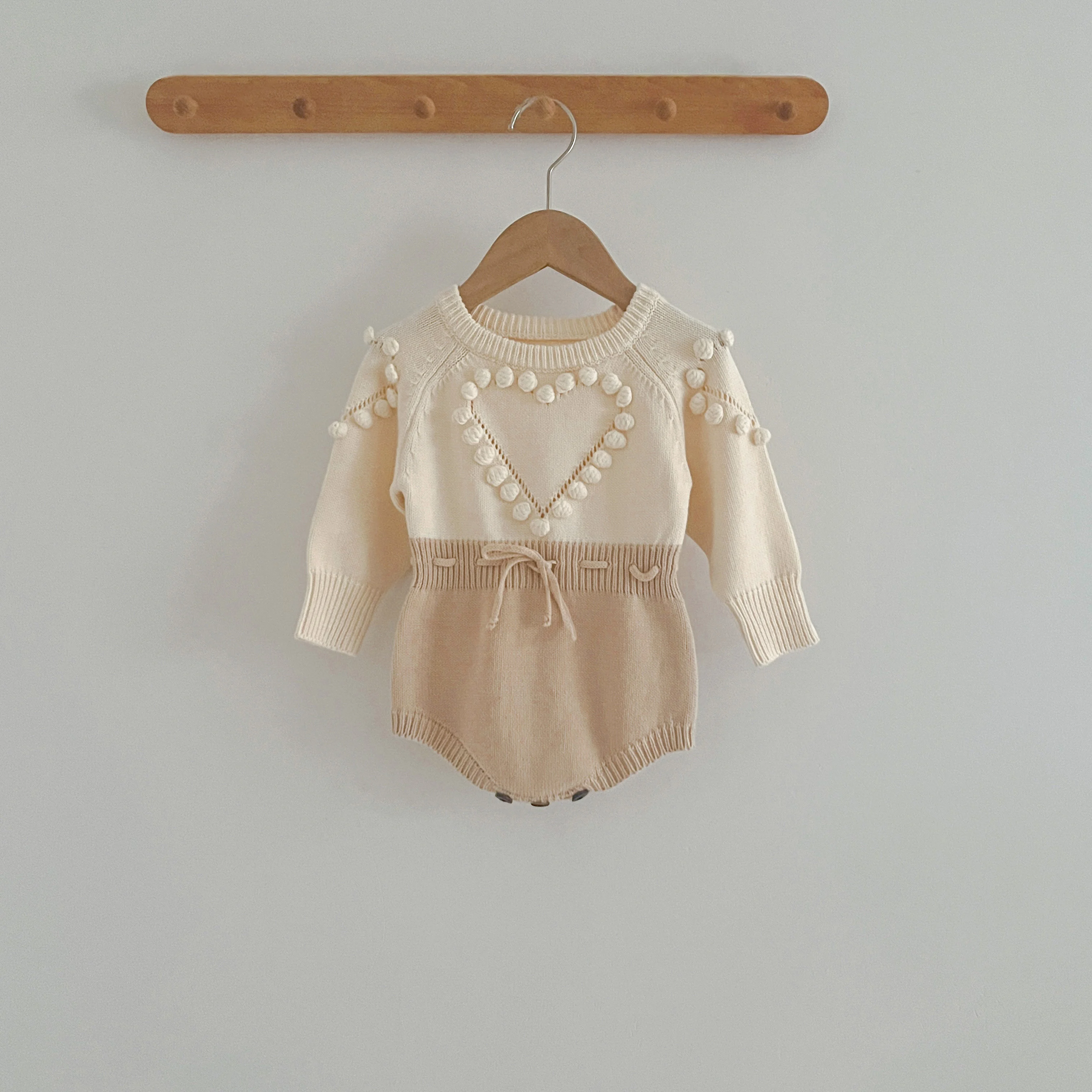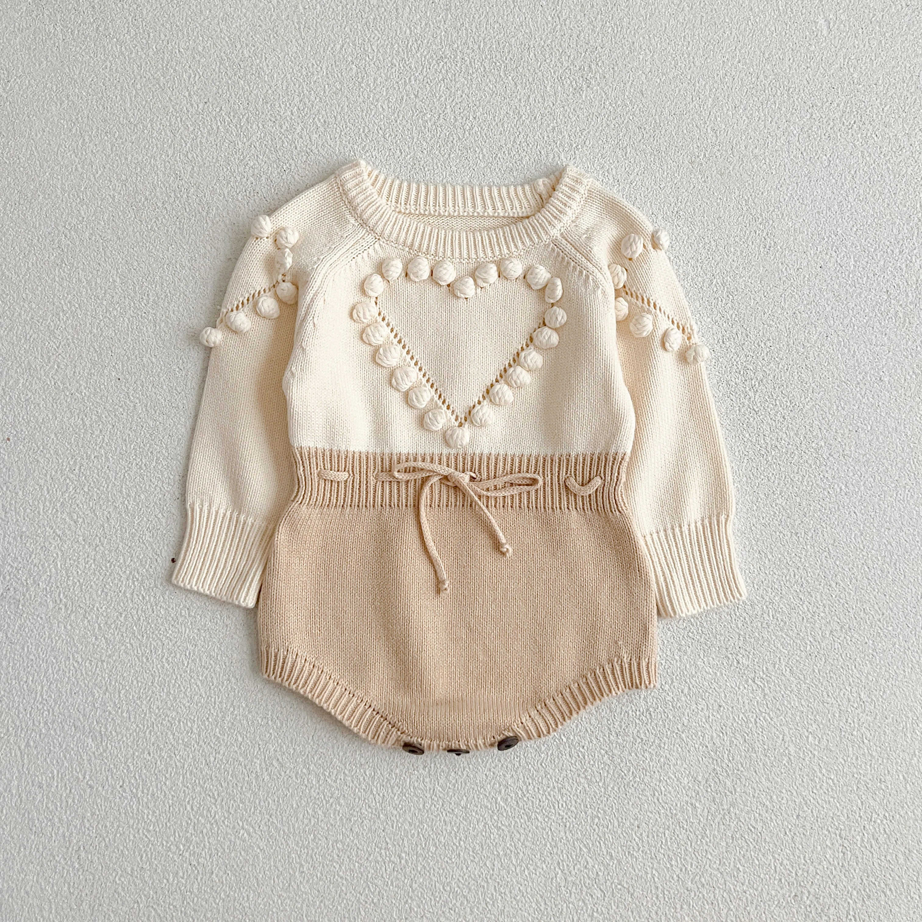 Autumn Lovely Heart Jumpsuit Infant Baby Girl Knitted Clothes Love Romper Bodysuit Outfit Spring Cotton Knitted Sweater Bodysuit