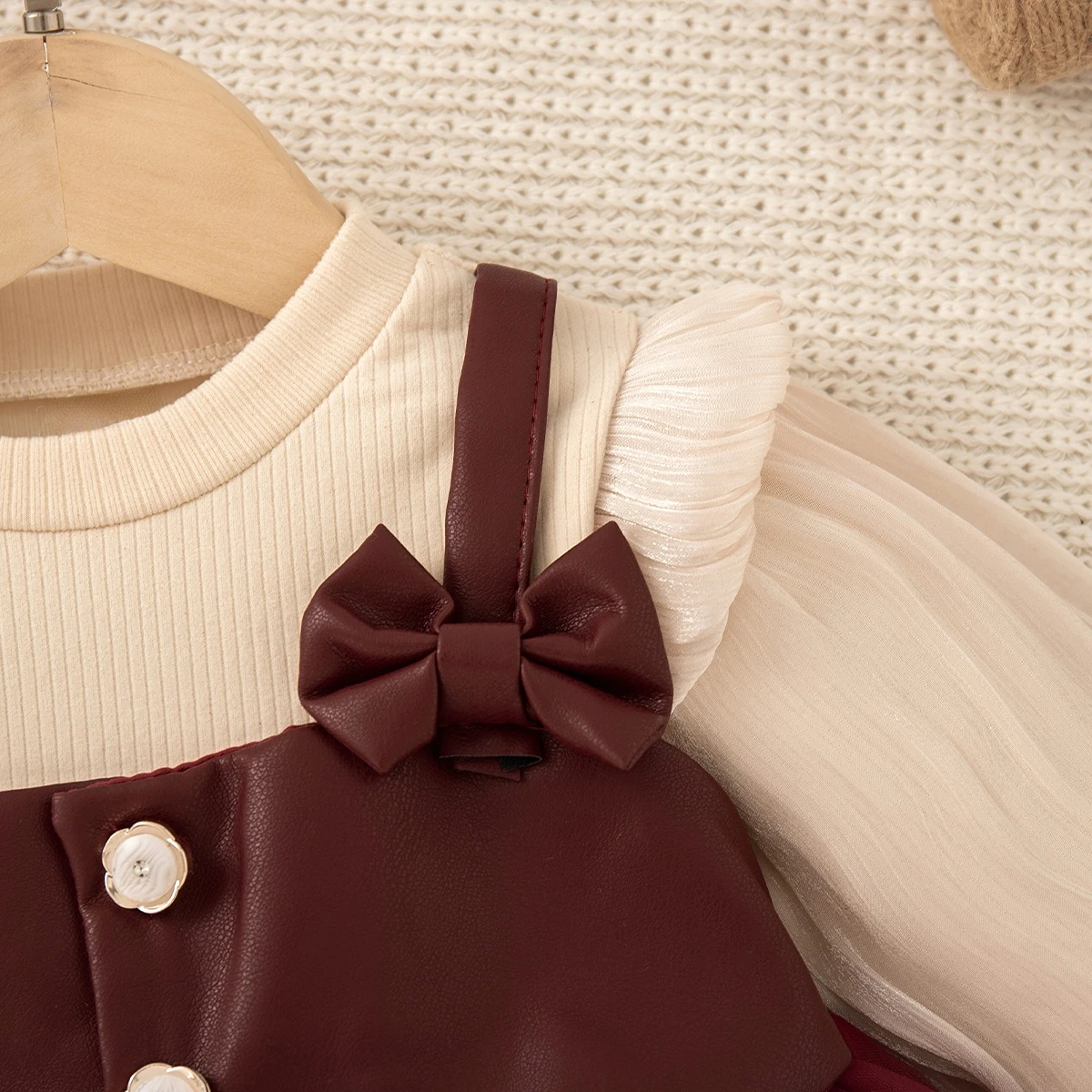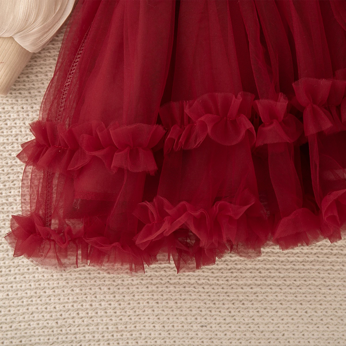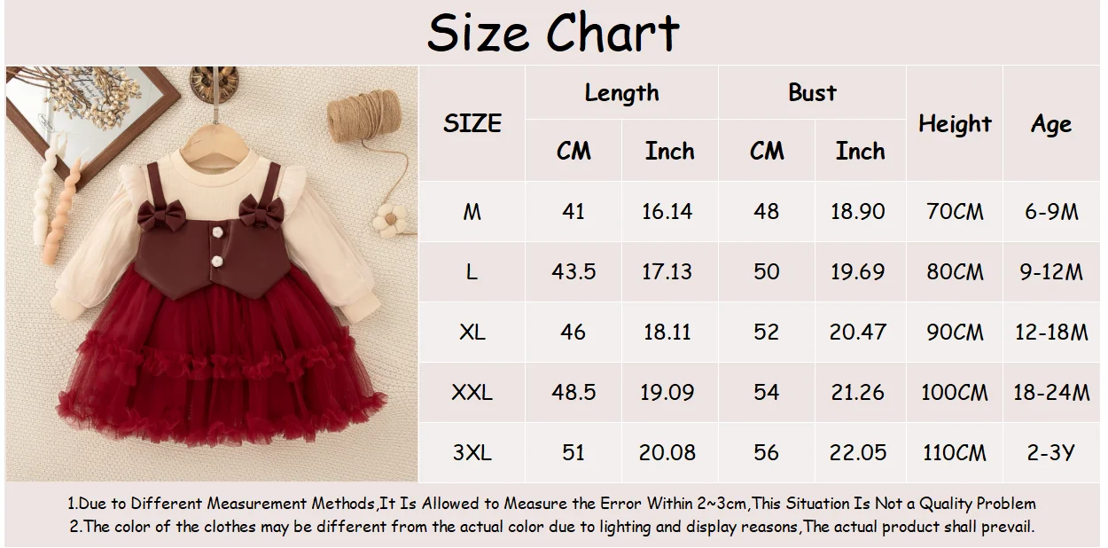 Baby Girl Dress Fall/Winter Bow-Trim Tulle Long-Sleeve Girl Dress Adorable Christmas Baby Dress Baby Girl Clothing