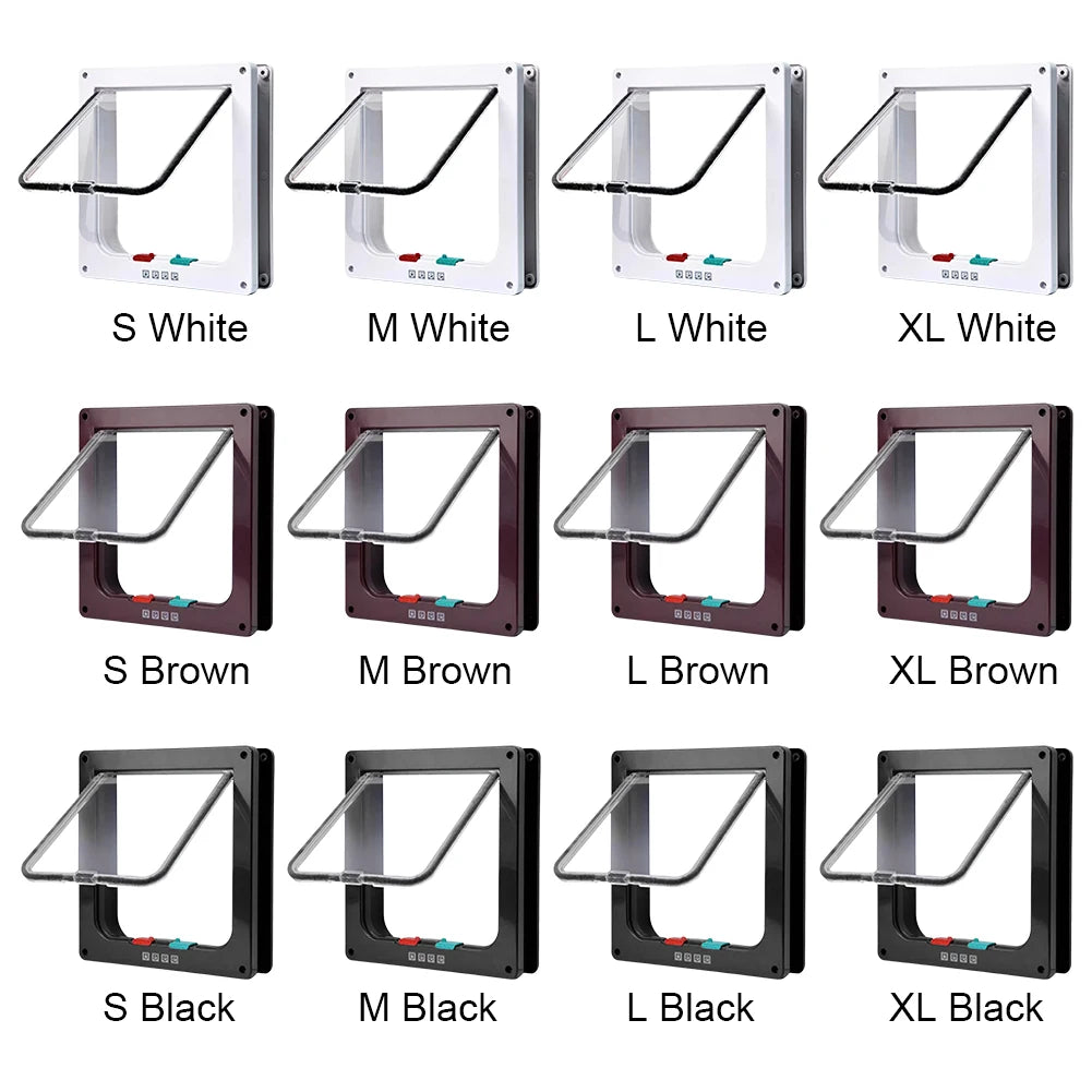 Cat Flap Door with 4 Way Security Lock Puppy Kitten Safety In&out Pet Door ABS Plastic Small Pet Gate Pet Doors and Sliding Door