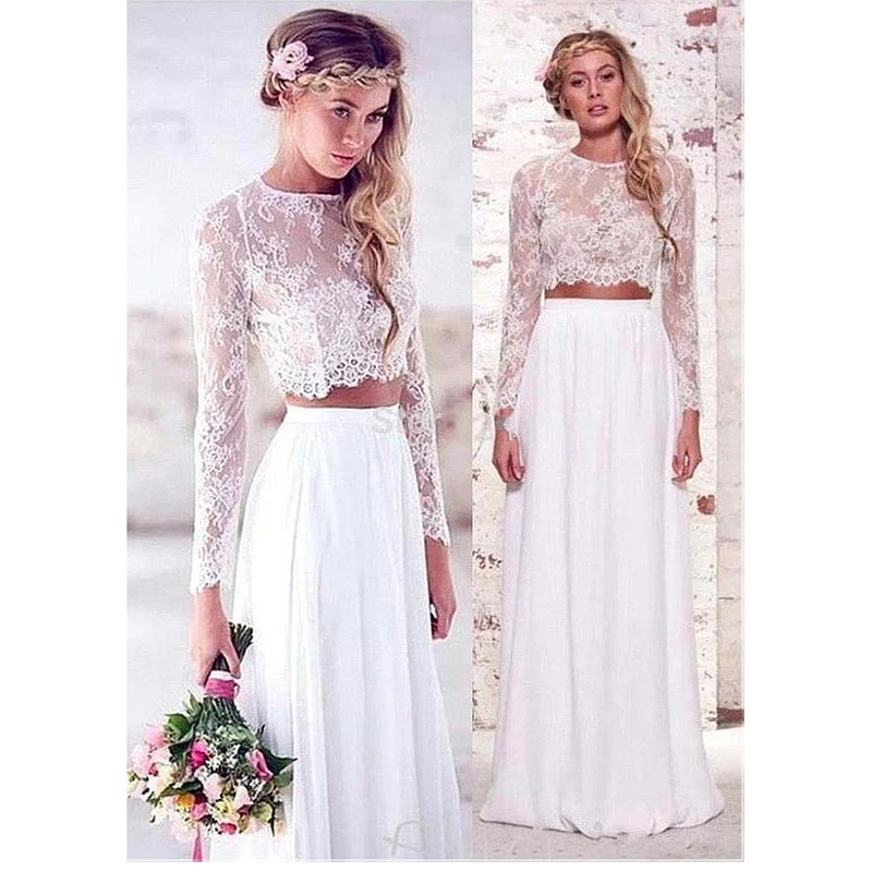 Chiffon Two Piece Wedding Dress 2026 Long Sleeves White Ivory Lace Beach Bridal Dress Boho Wedding Gowns plus size Customized