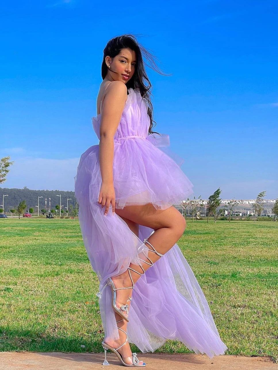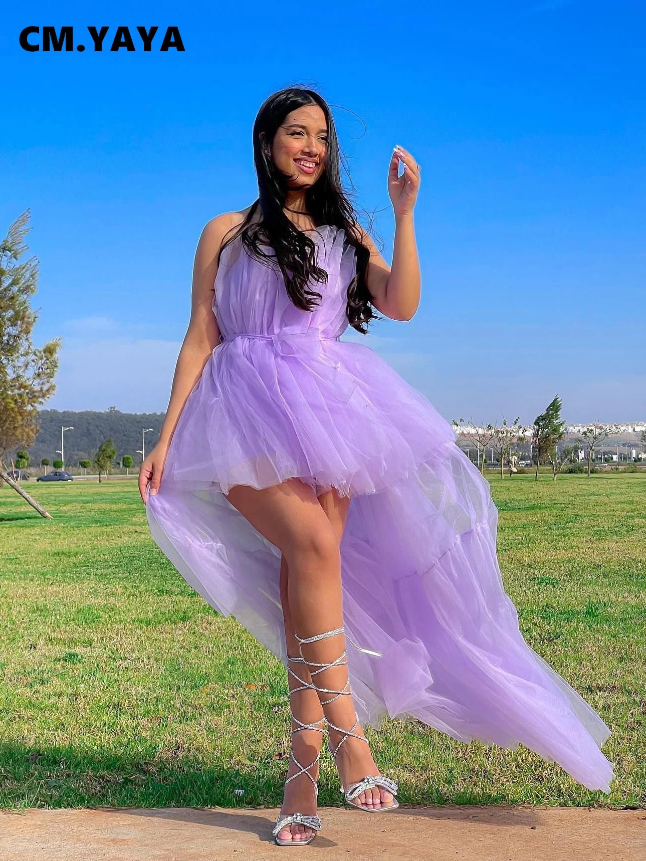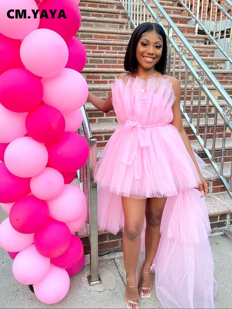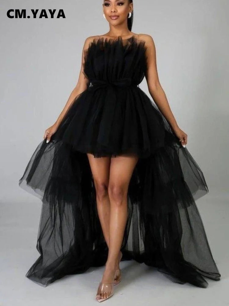 CM.YAYA Women Strapless Mesh Ball Gown High Low Irregular Cocktail Dress 2023 Autumn Vestidos Sexy Party Even Dresses