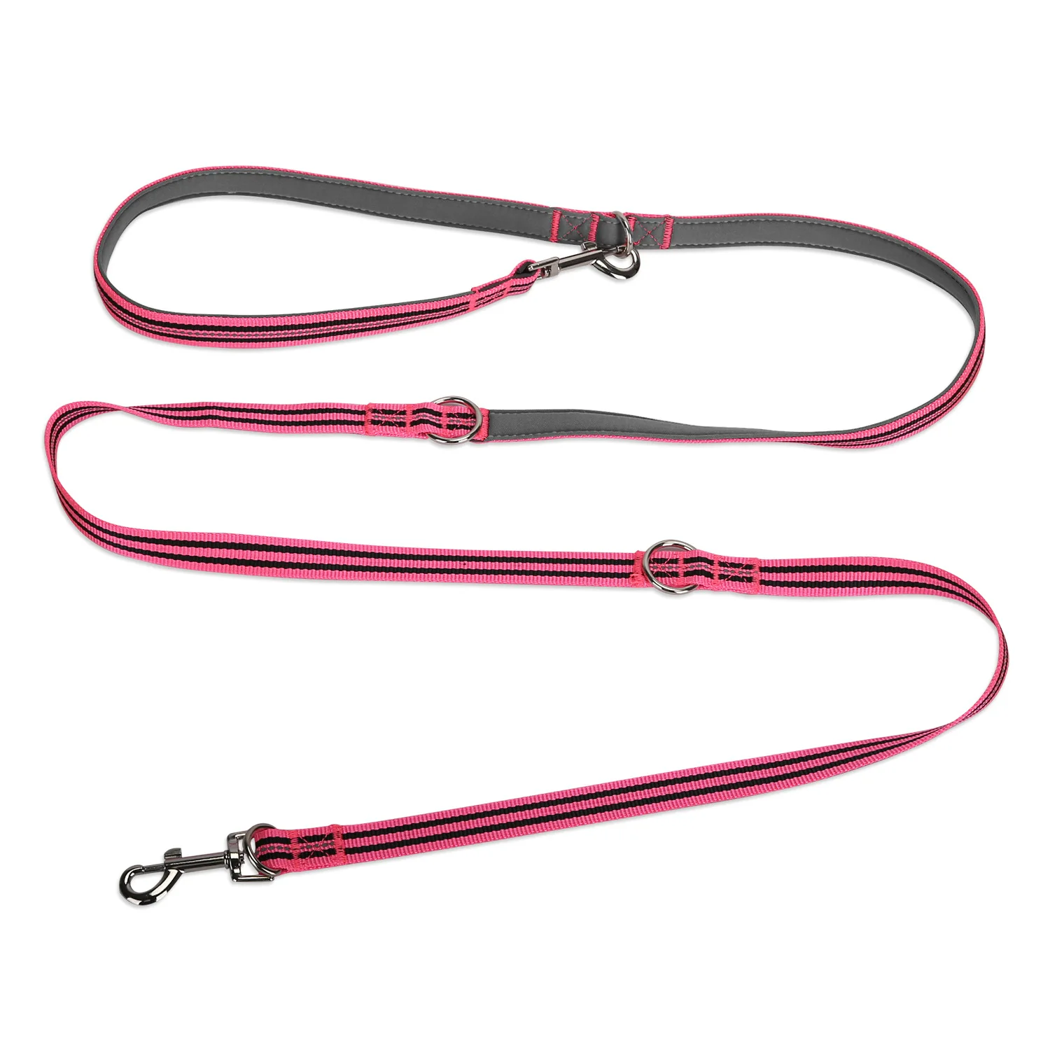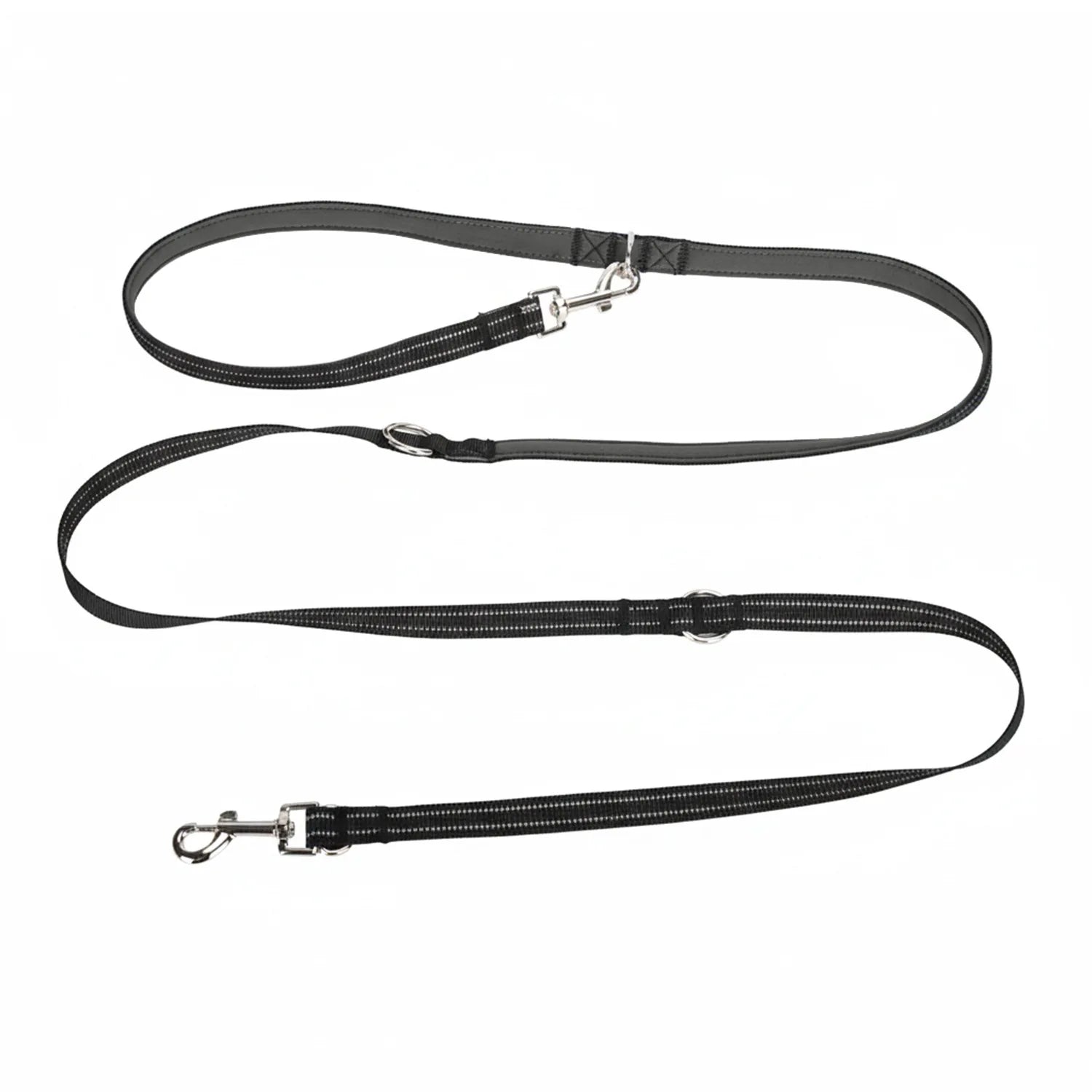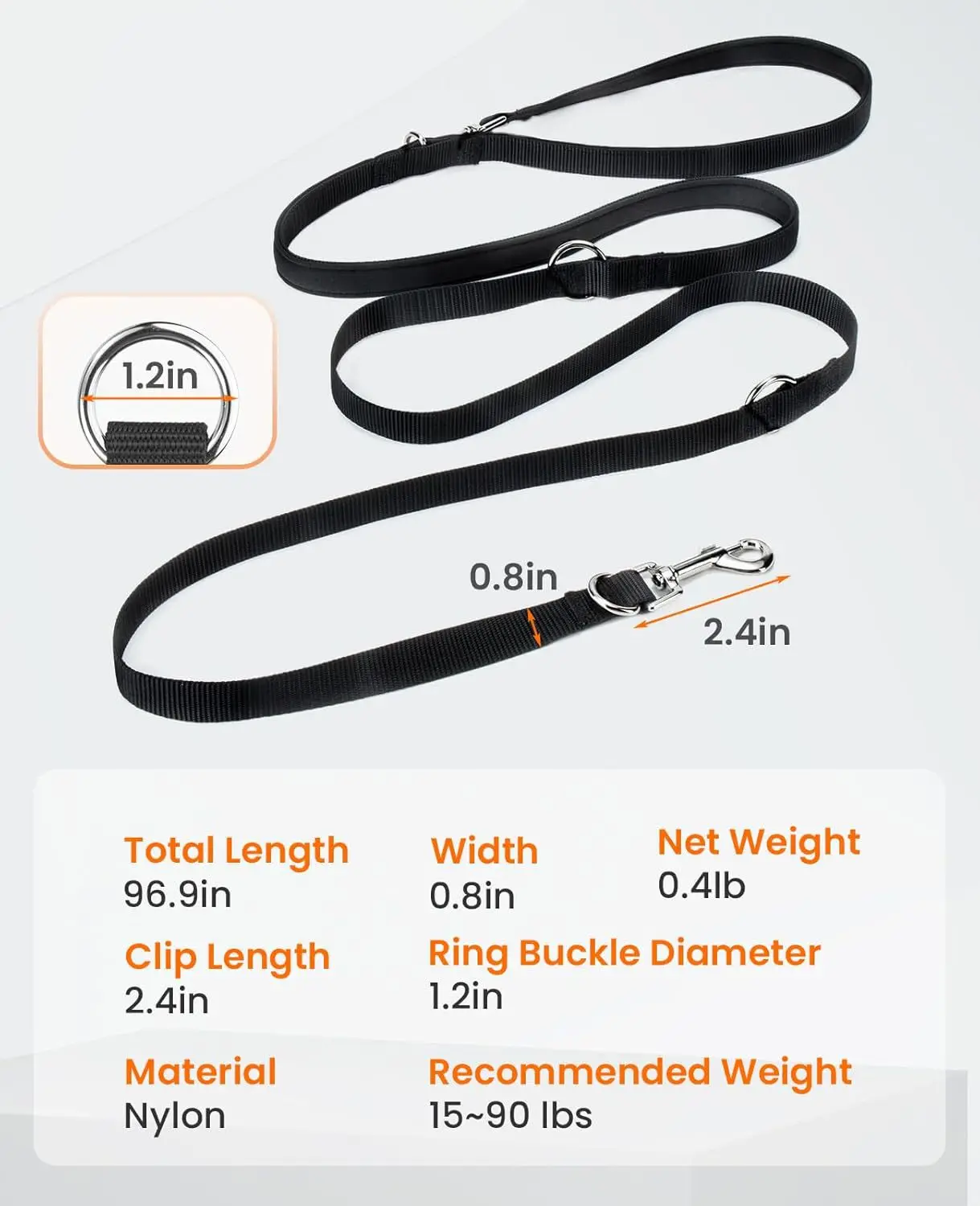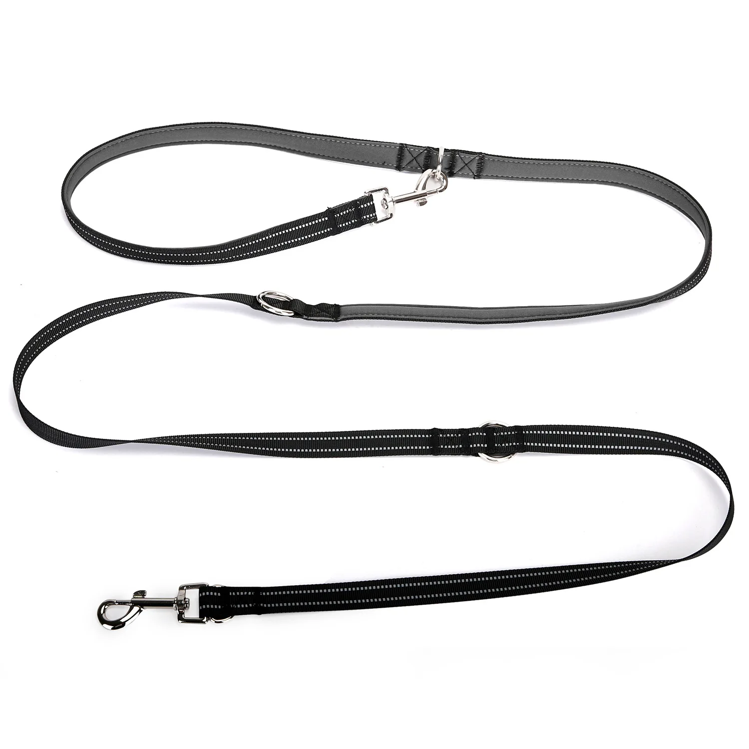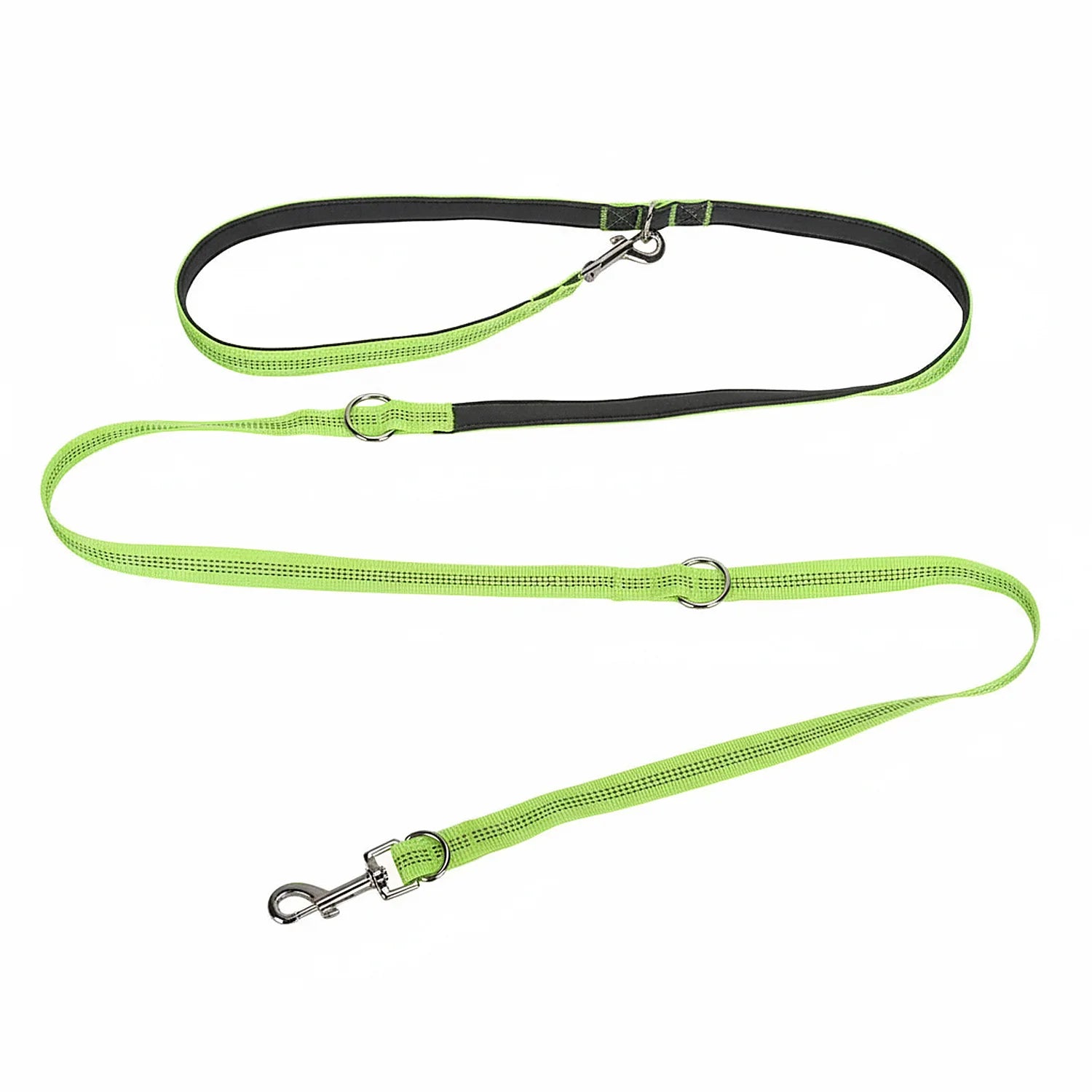 Crossbody Dog Leash Versatile Crossbody Waist Leash with 3 Rings Puppy Walking Leash Reflective Nylon Multifunctional Pet Rope