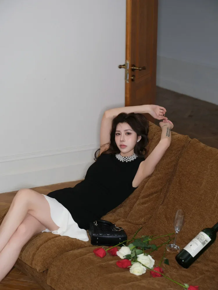 • Exquisite Pearl Detailing : The exquisite pearl embellishments add a touch of luxury and femininity to this sleeveless dress.