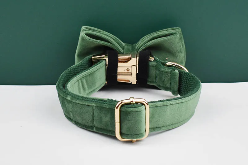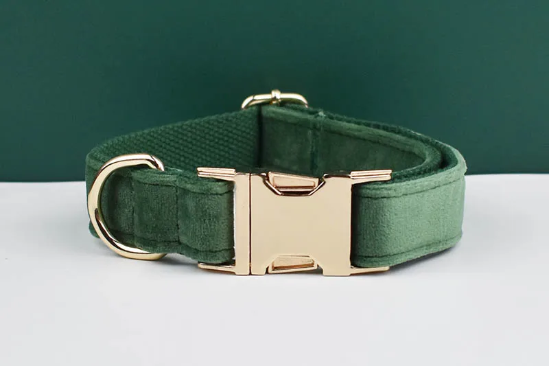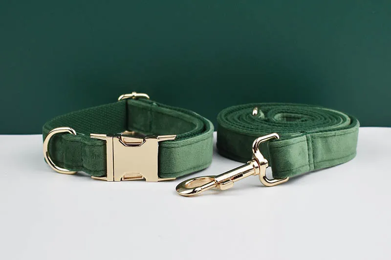 Forest Green Velvet Dog Collar And Leash Set For Dogs Custom Engraved Nameplate Pet Supplies Dog Leash Velvet 39