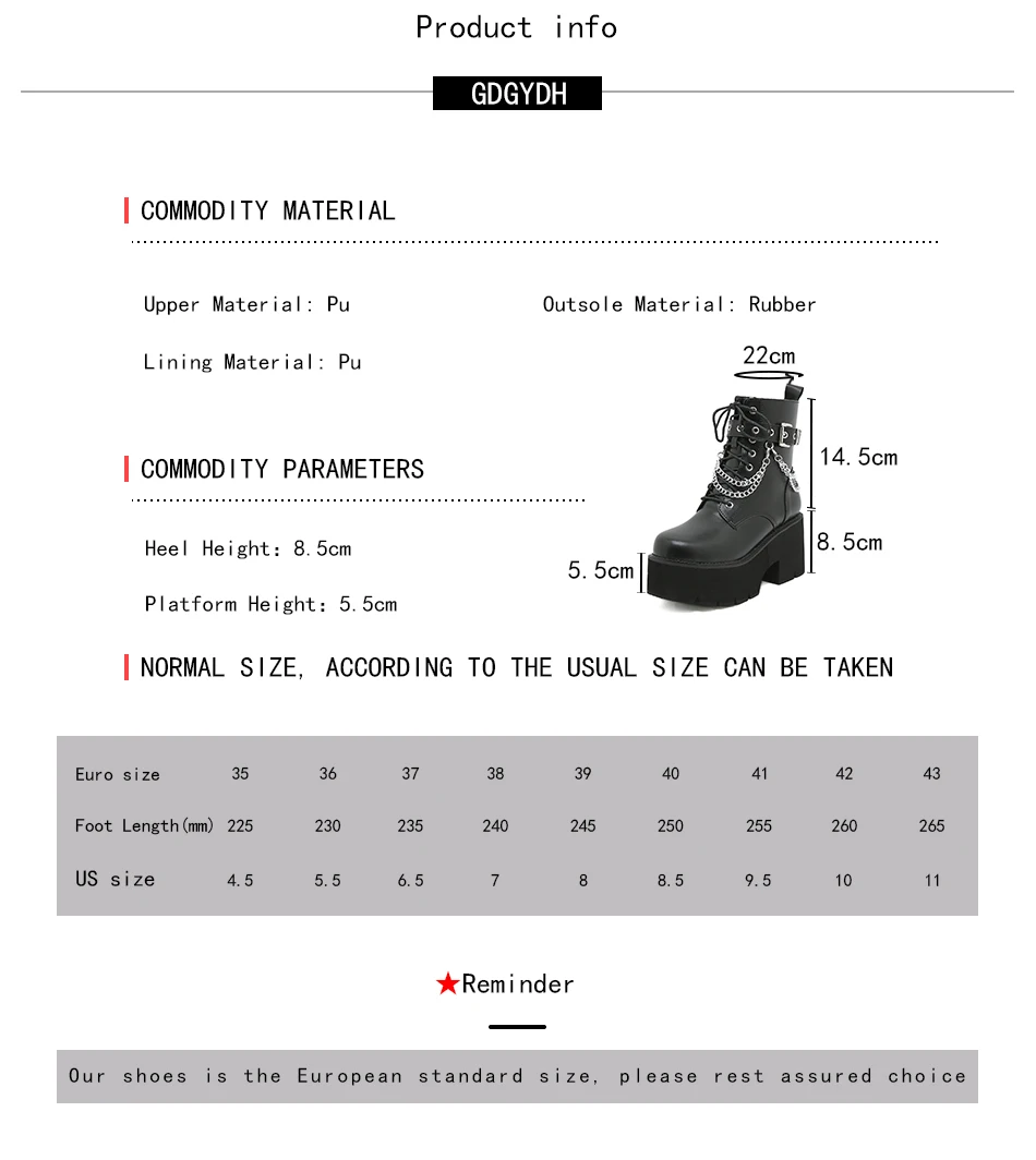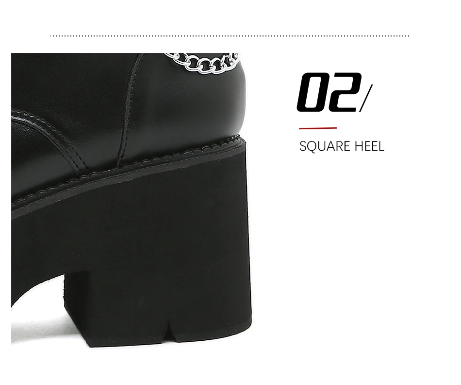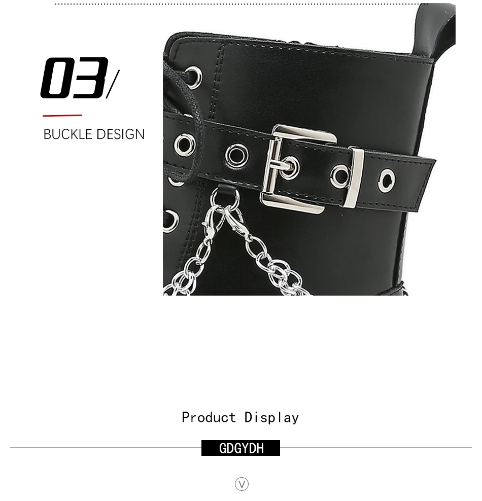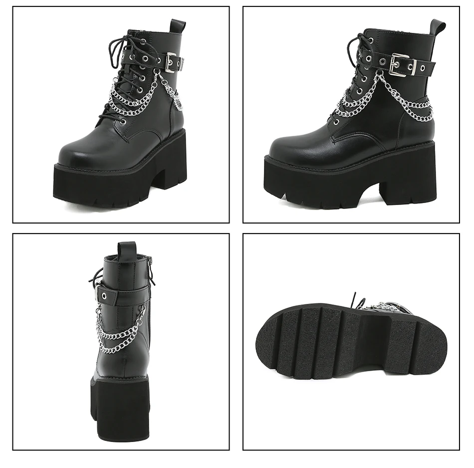 Gdgydh Modern Boots Woman Shoes Gothic Metal Decoration Black Boots Women Heels Sexy Chain Chunky Heel Platform Footwear Zipper