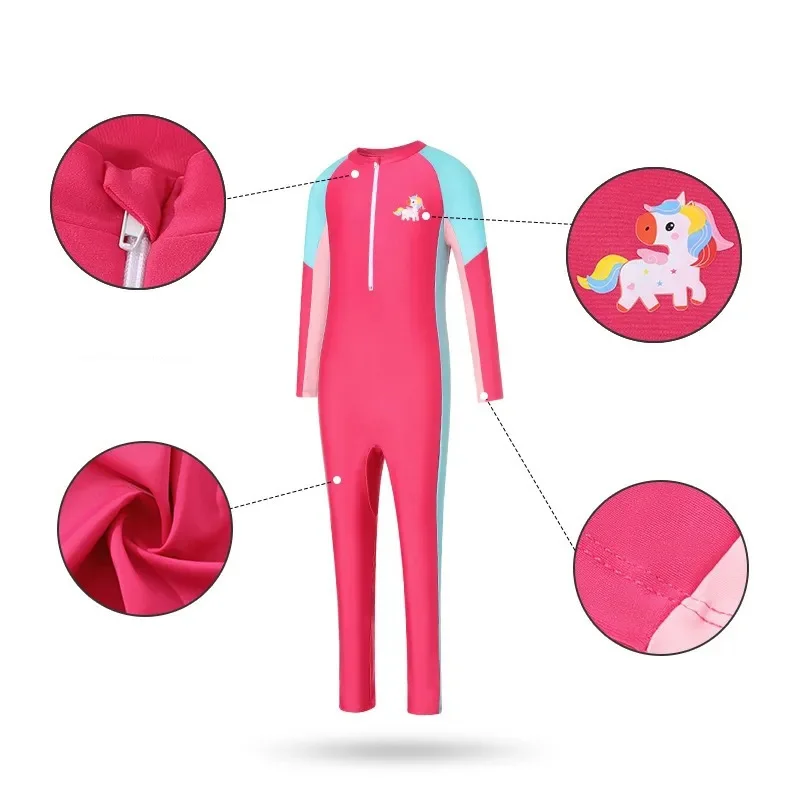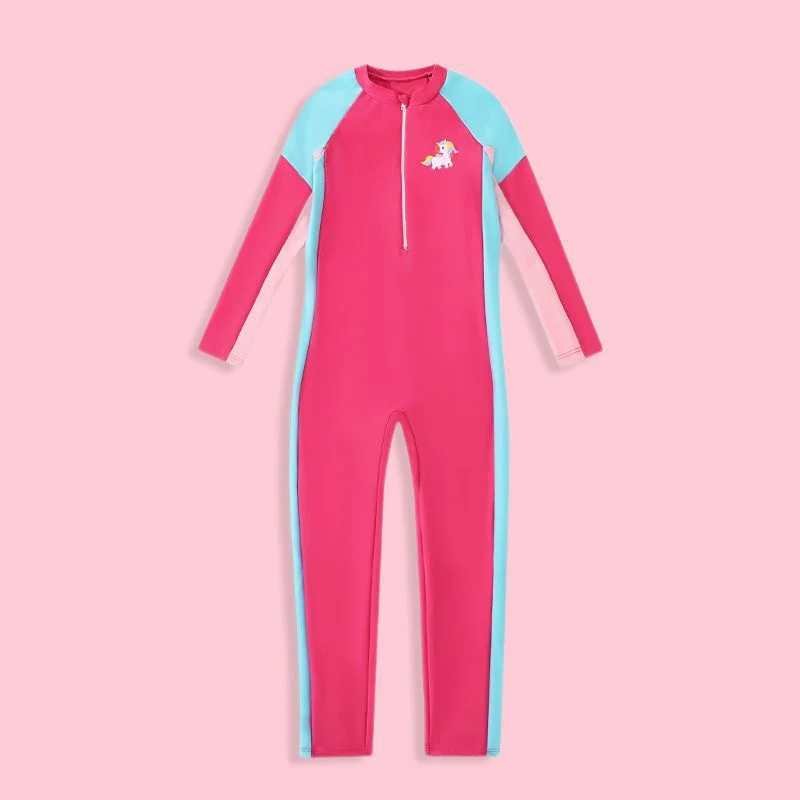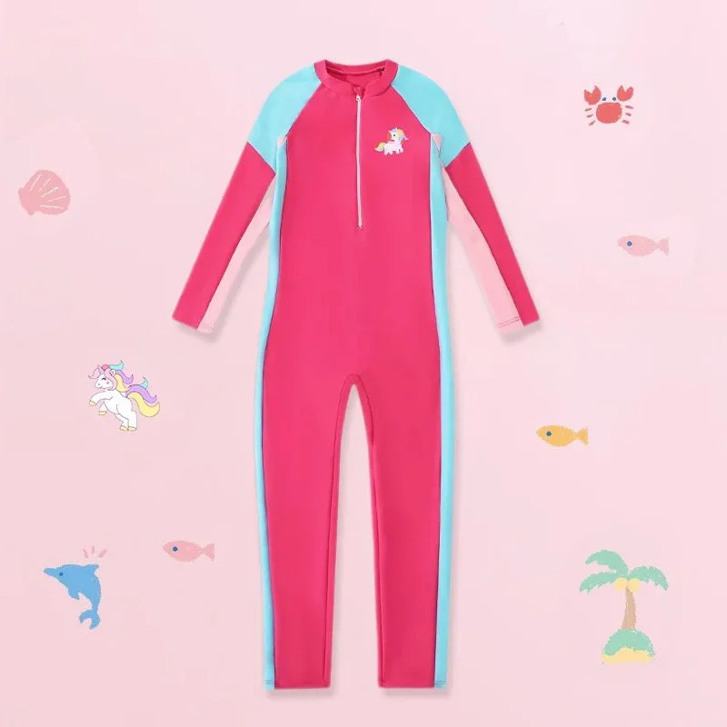 Girls Swimsuits Children Fashion Long-sleeved One-piece Costume 6-12Y Kids Summer Pool Swimming Clothing Teenager Swimwear