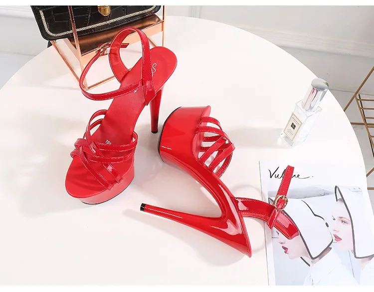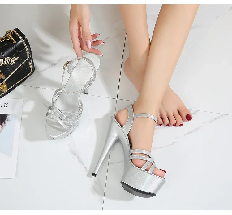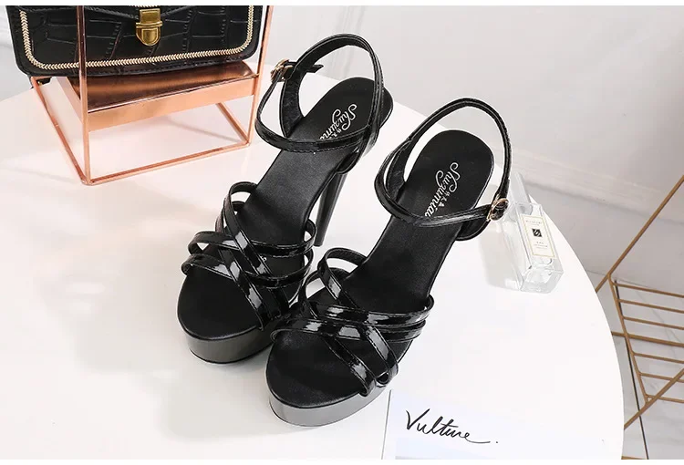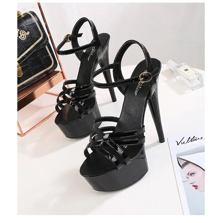 High Heels Model Sexy Black Waterproof Platform 15cm Ultra High Heel Sandals Women Summer Show off Tool for Women Shoes