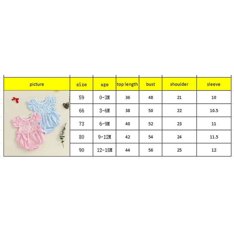 Infant Baby Girl Summer Romper Outfit Ruffle Short Sleeve Bodysuit Bow Embroidery Plaid Jumpsuit 0-18M