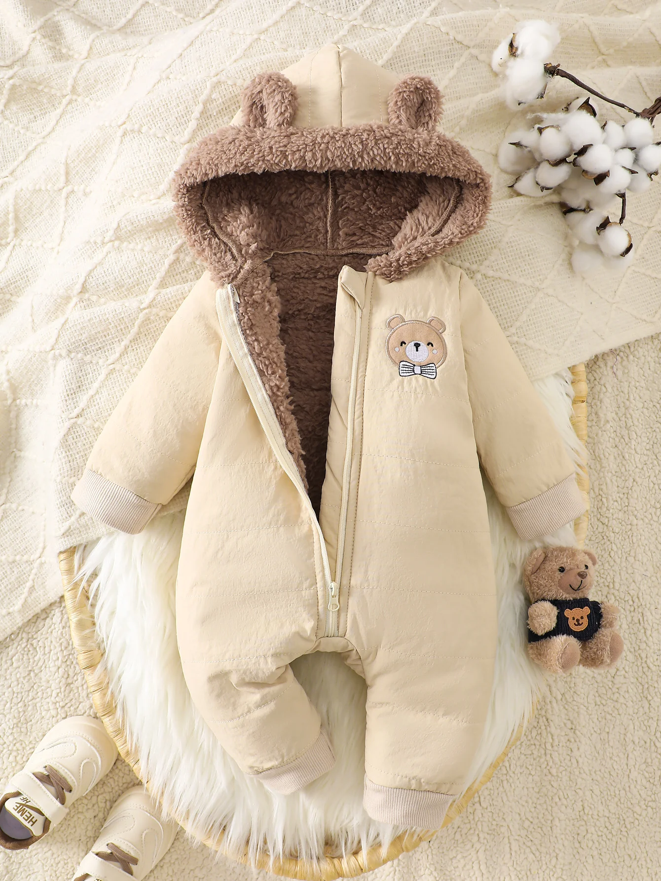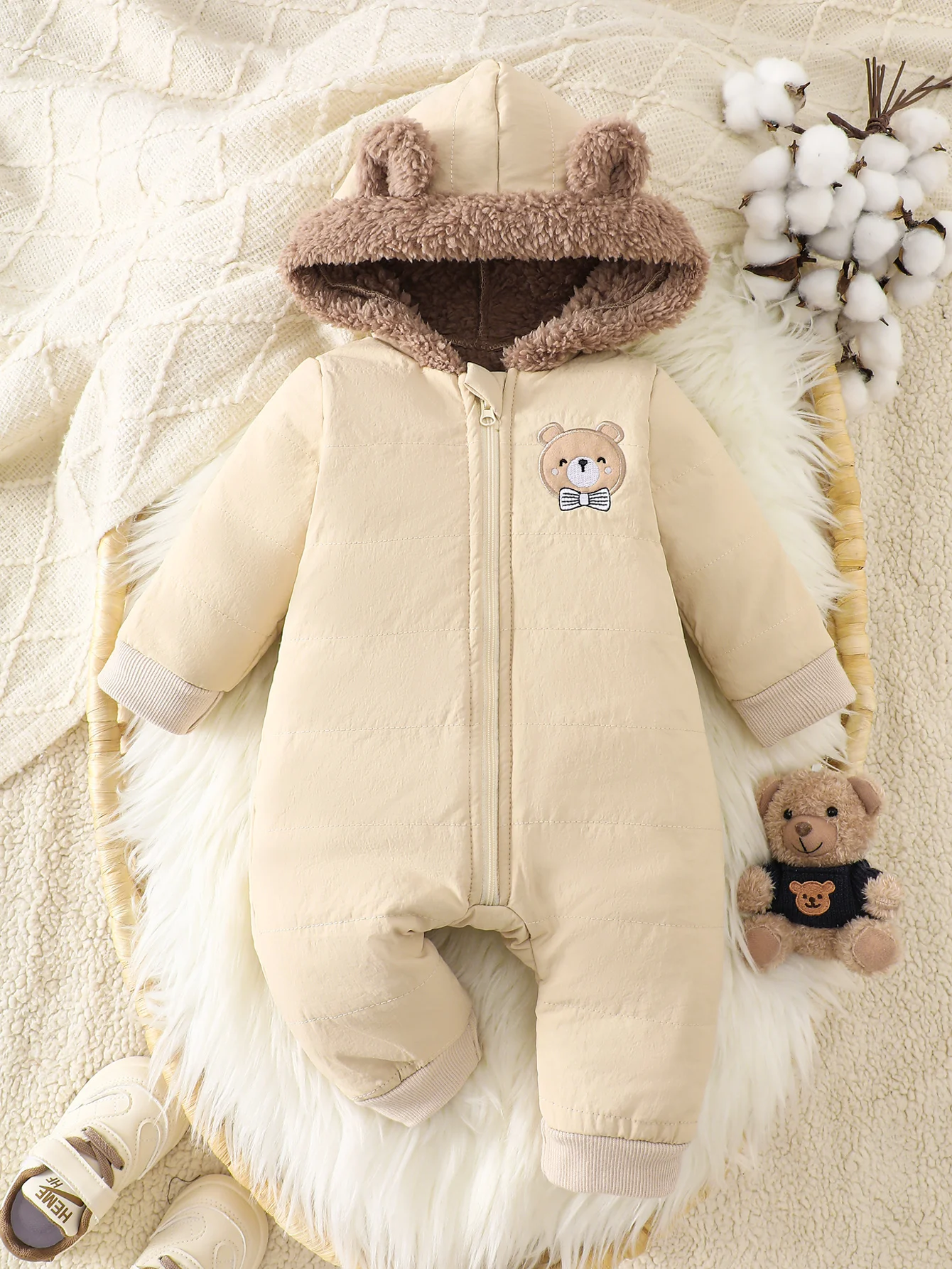 IURNXB Newborn Baby Fleece Romper Clothes Long Sleeve Hooded Onesie Thicken Jumpsuit Infant Costumes Warm Homewear Outfits 1-18M