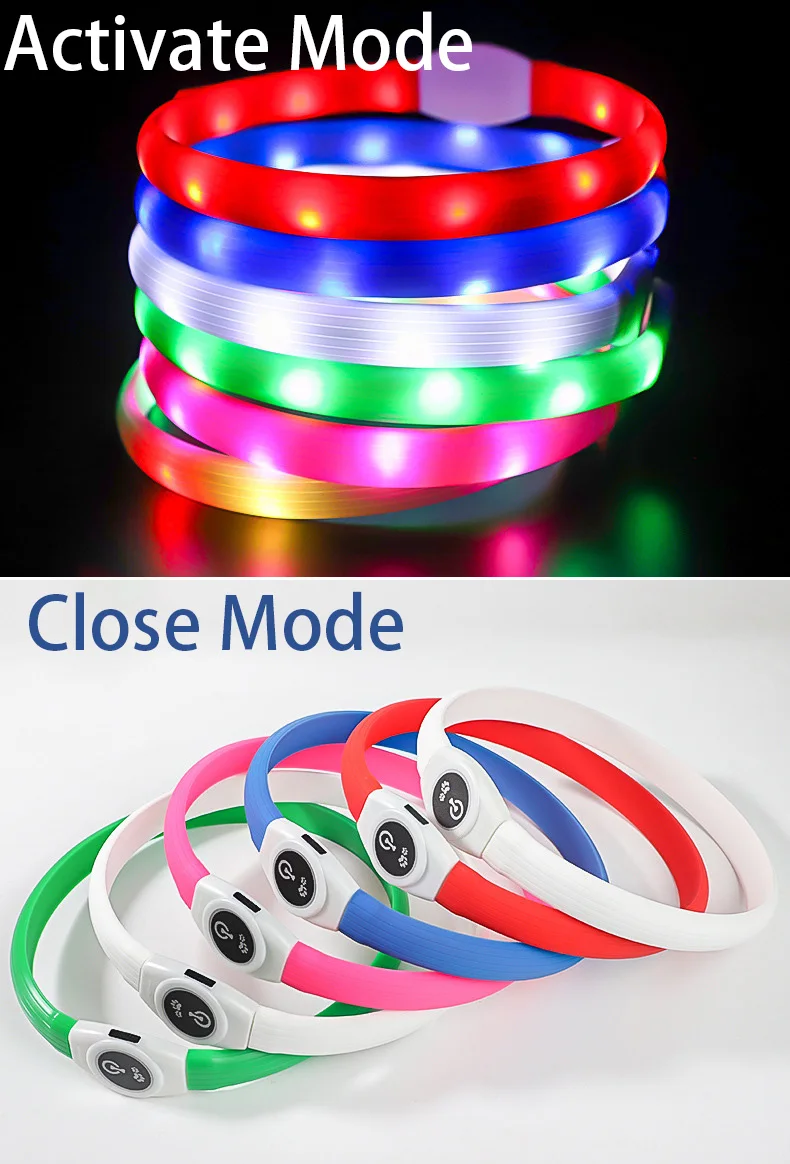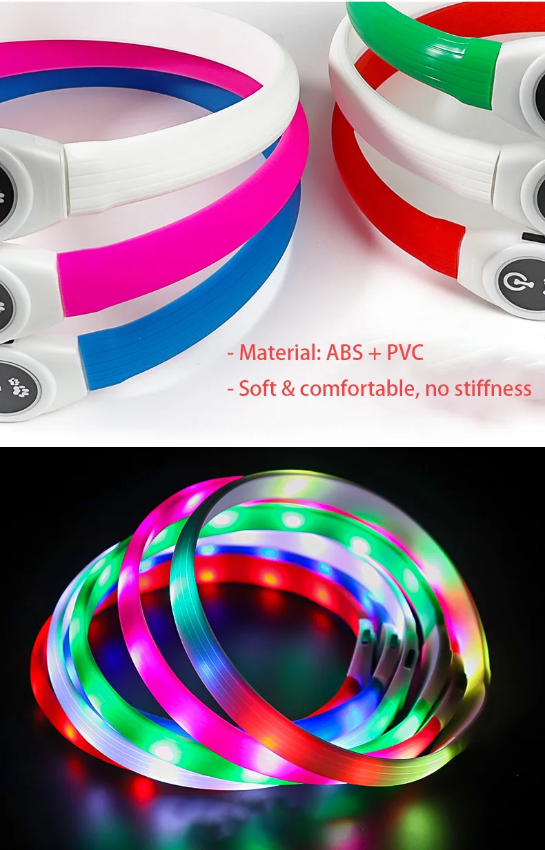 LED Illuminated Dog Collar, Waterproof PVC Material, With USB Interface, 3 Modes, Suitable for Large, Medium And Small Dogs.