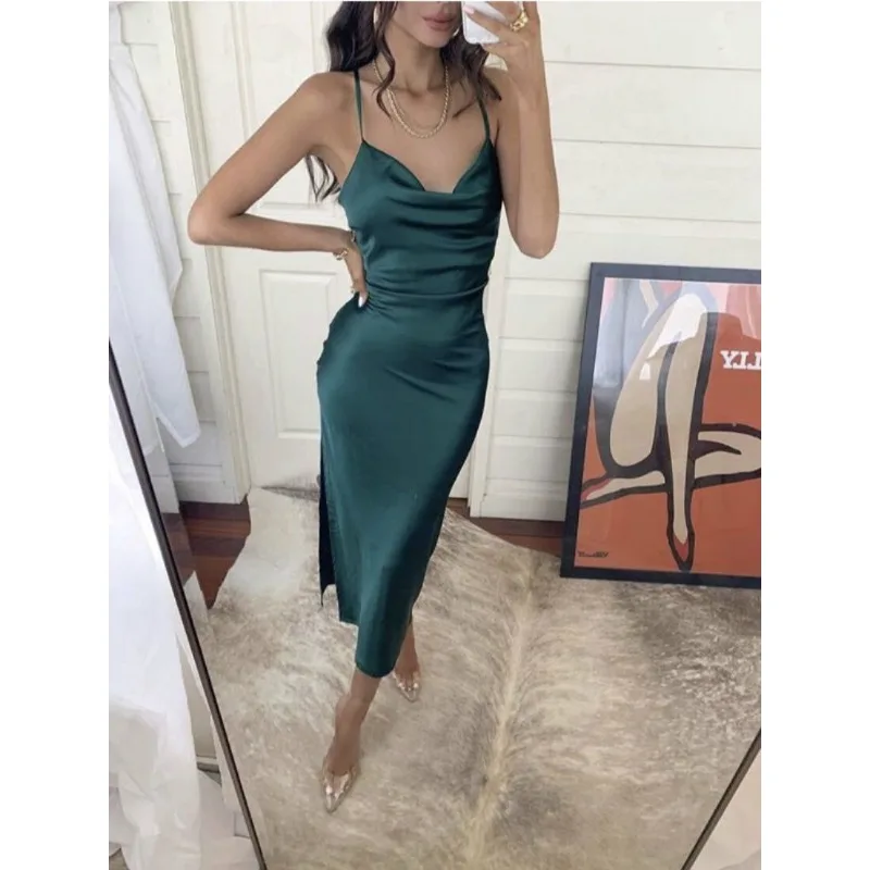 The dress's folds decoration adds a touch of sophistication, making it a standout piece in any ensemble.