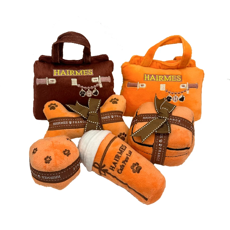 Luxury Desigenr Handbag Dog Toys Plush Squeaky Pet Accessory Puppy Chewing Bite Toy