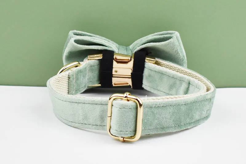 Mint Green Velvet Dog Collar And Leash Set For Dogs Custom Engraved Nameplate Pet Supplies Dog Leash Velvet 17