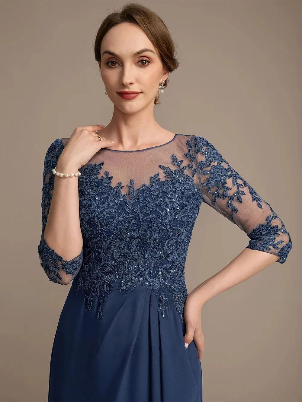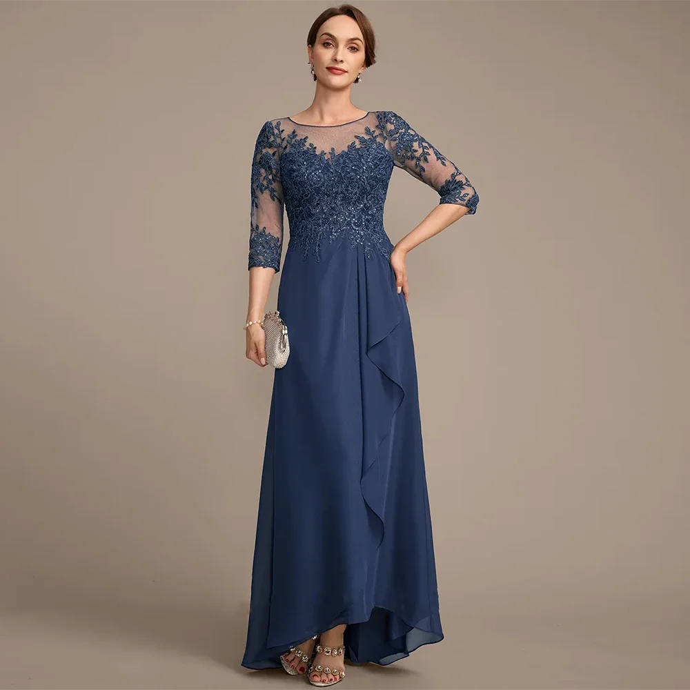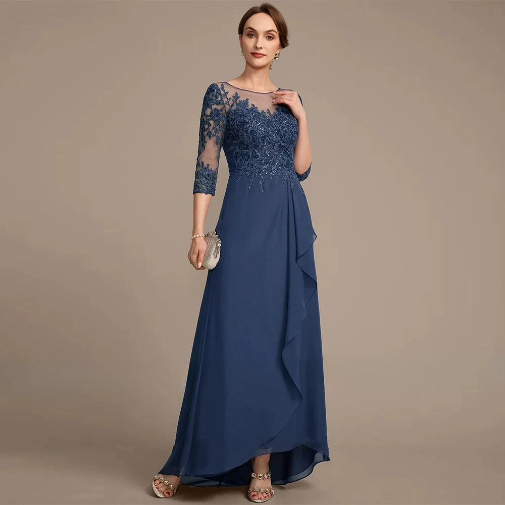 Mother of The Bride Dress 3/4 Sleeves Scoop Neck Sequined Applique Ruffles Wedding Guest Gown Woman Party Dress Customized