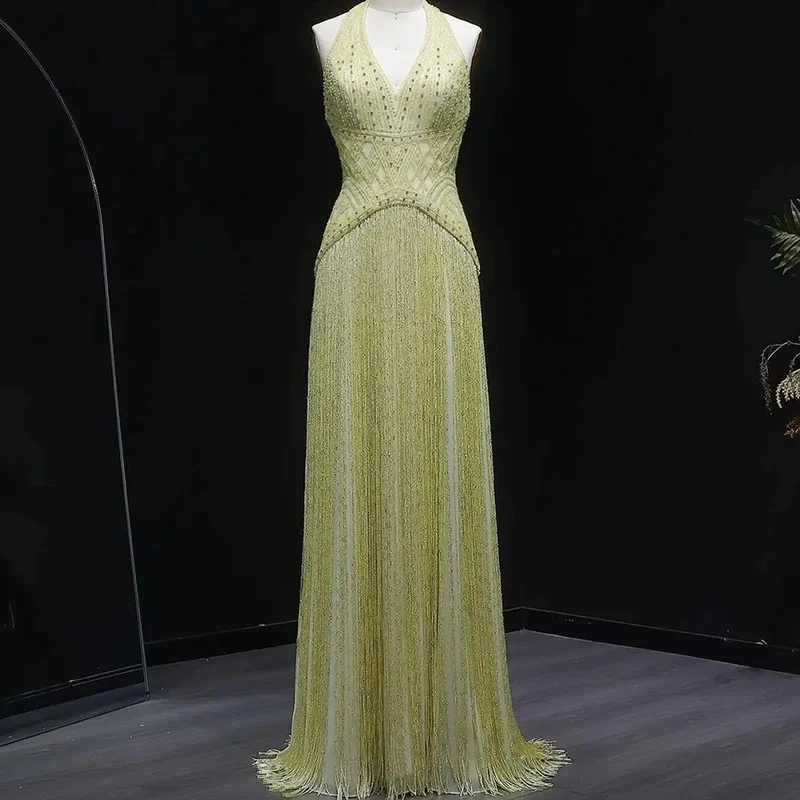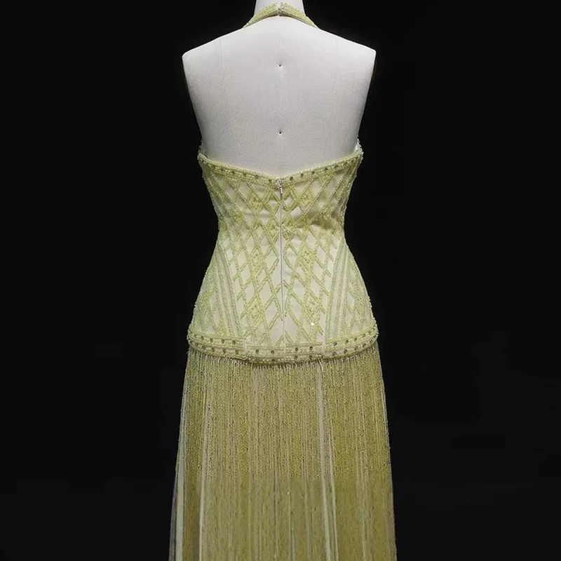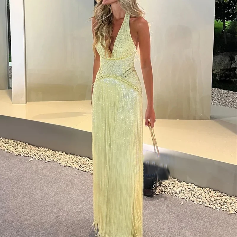 New 2026 Women's Banquet President Dress Fashion Sequin Tassel Slim Cocktail Dress Elegant Temperament Off Shoulder Strap Dress