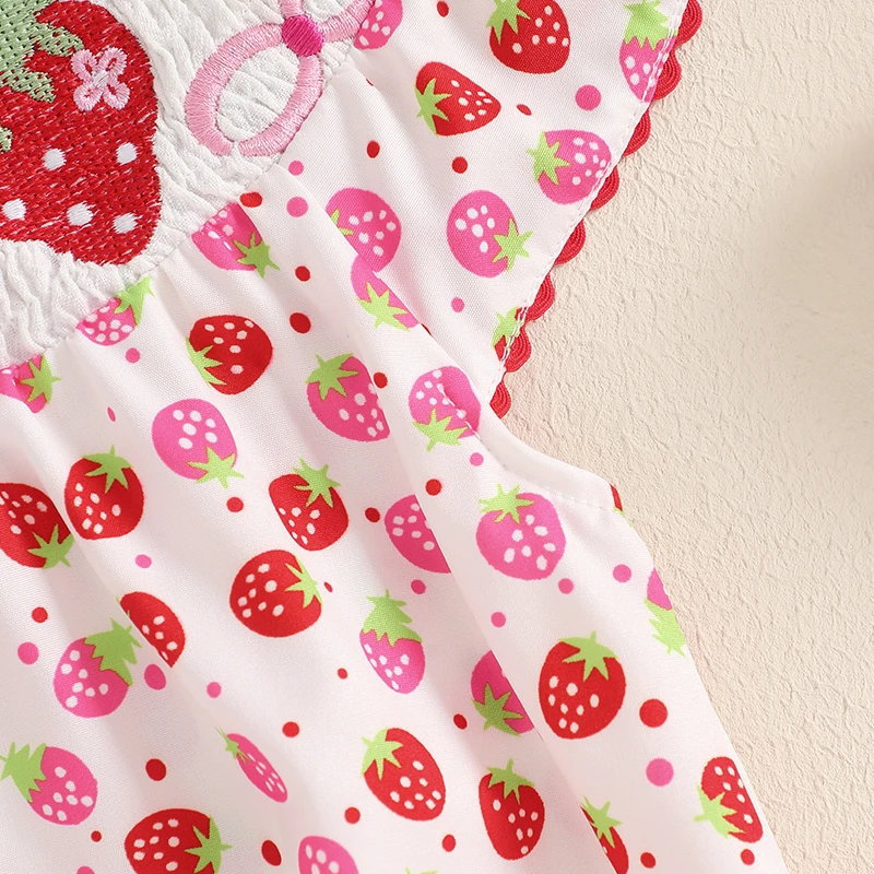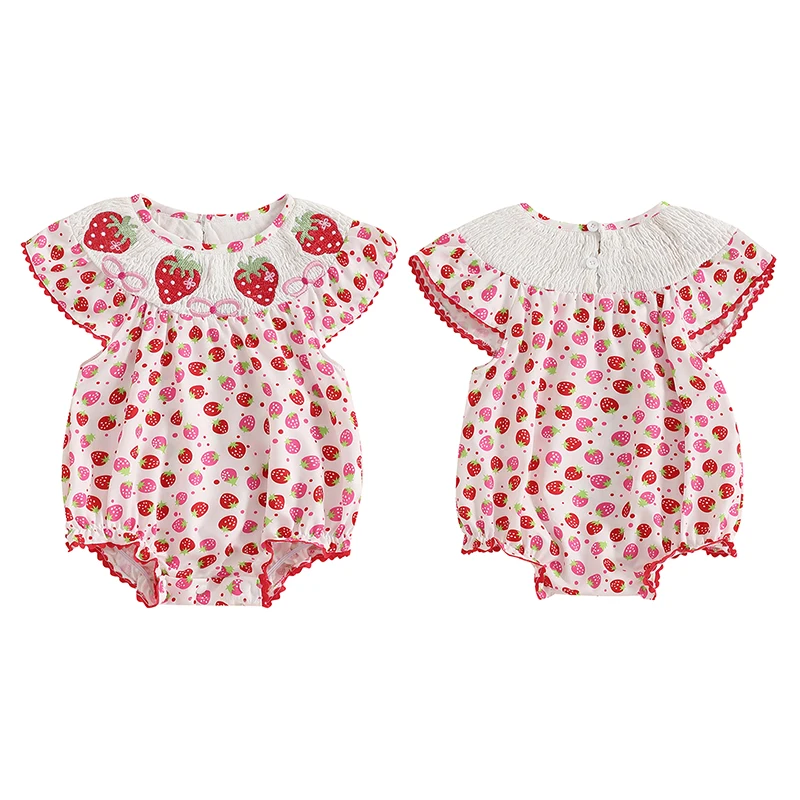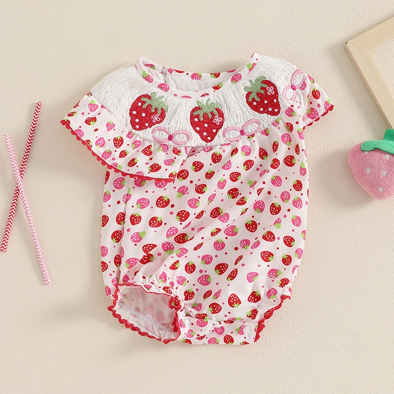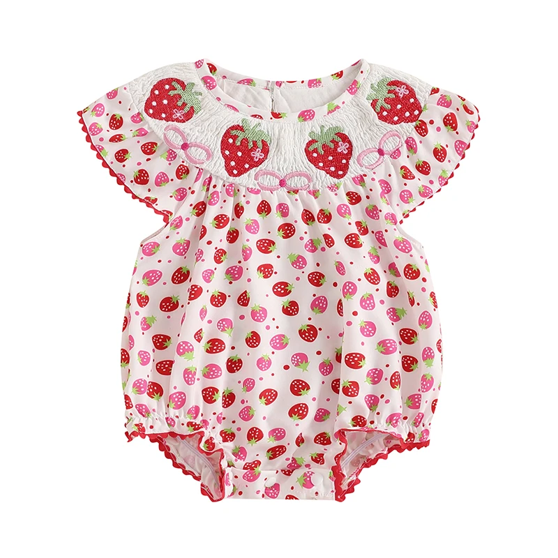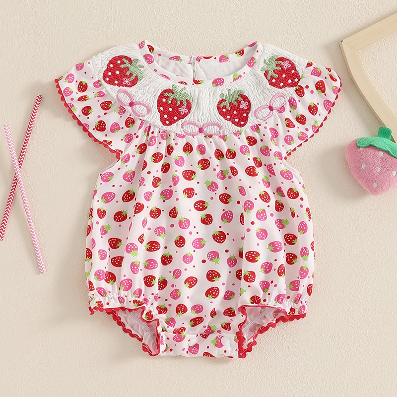 Baby Girls Romper, Sleeveless Crew Neck Strawberry Print Infant Bodysuit Summer Clothes for Casual DailyThe cute and fashionable infant baby girl romper must be a wonderful present for your baby. A perfect choice for keeping your little one cool and comfortable during the hot summer months.