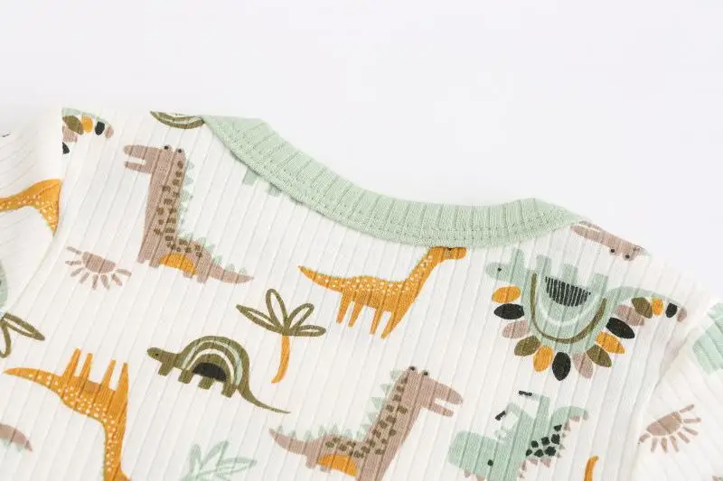 Newborn Ribbed Bodysuits Set 6PCS Cotton Baby Girl Clothes Animal Print Baby Boy clothes Solid Color Short Sleeve