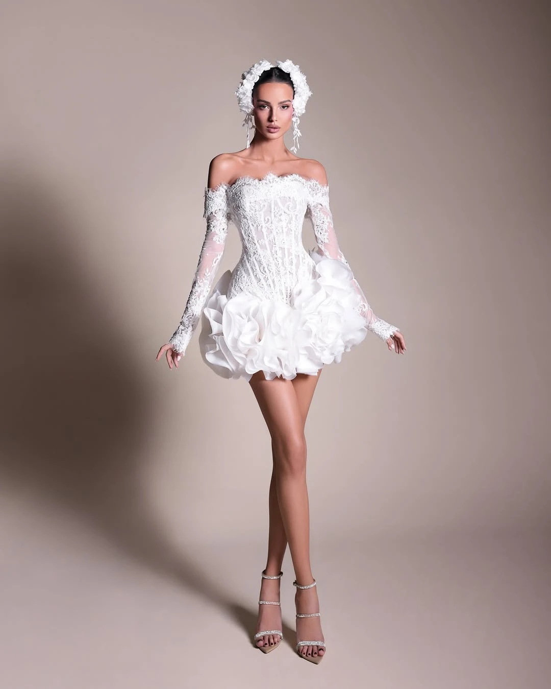 Off Shoulders White Satin Ball Gown Evening Dress Lace Cocktail Party Prom Formal Women's Fashionable Bridal Dress Wedding Gowns