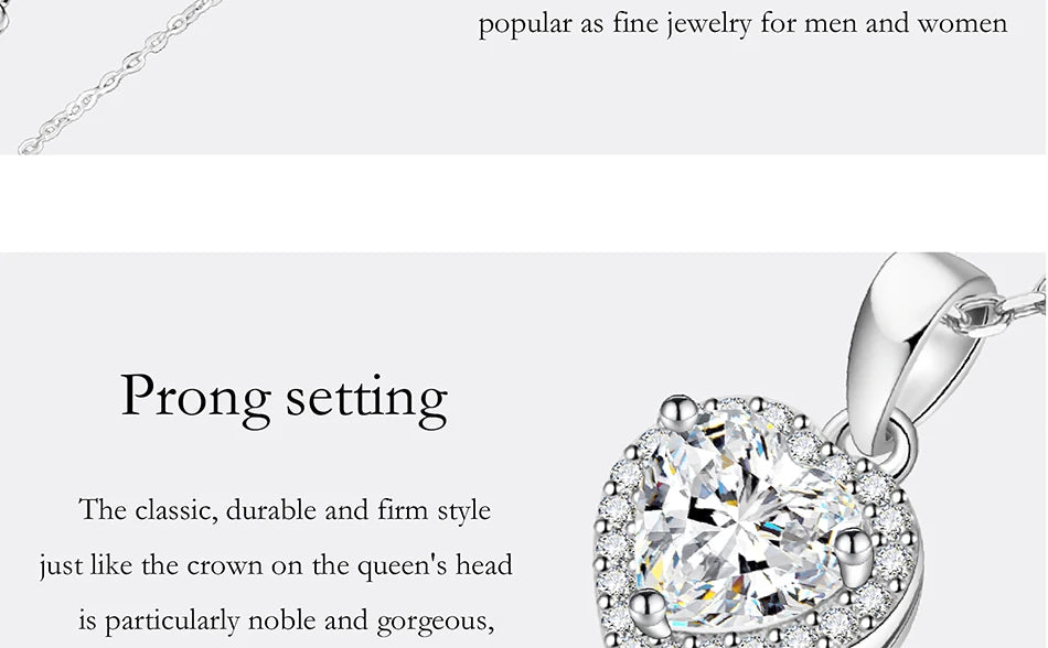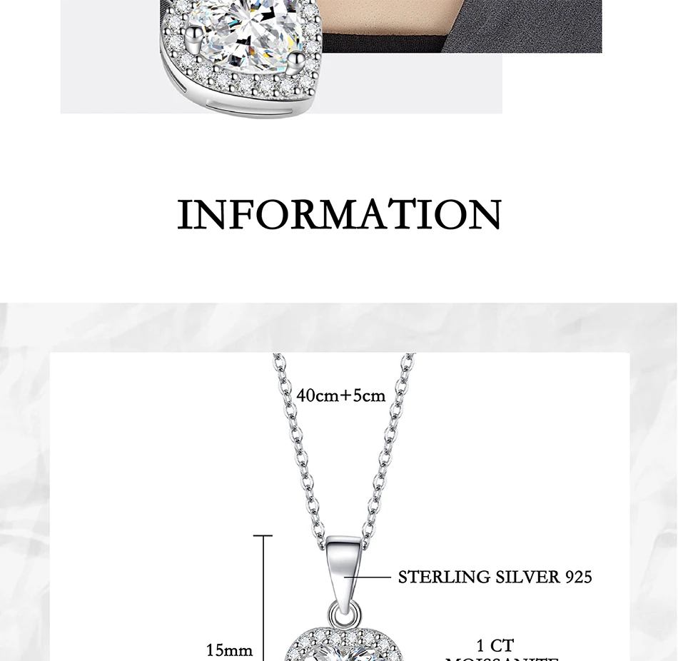 PERFANY 1CT Heart Cut Moissanite Necklace for Women S925 Pure Silver Sparkling Diamond Pendant Fashion Jewelry Party Gift