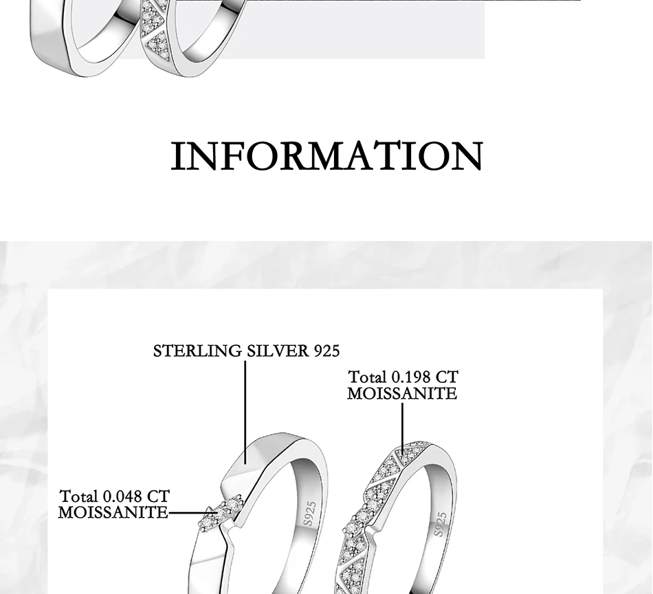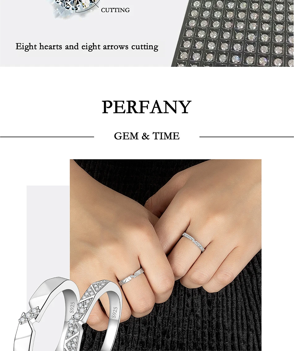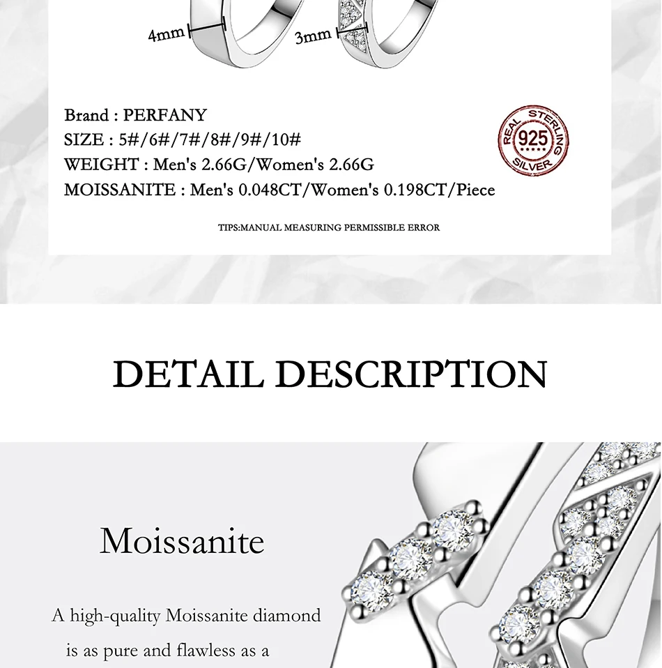 PERFANY All Moissanite Ring for Women Men S925 Pure Silver Couple Ring Simple Wedding Fashion Jewelry Birthday Gift