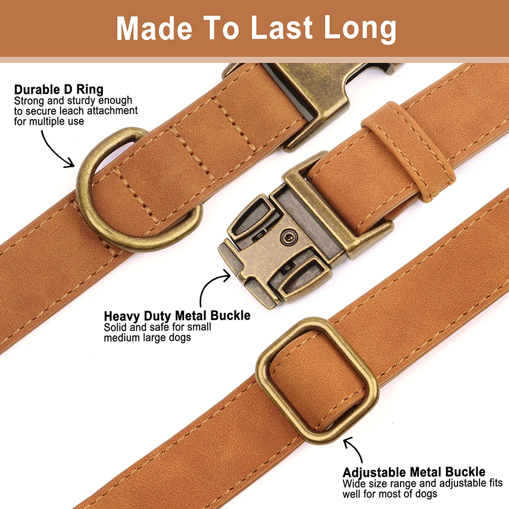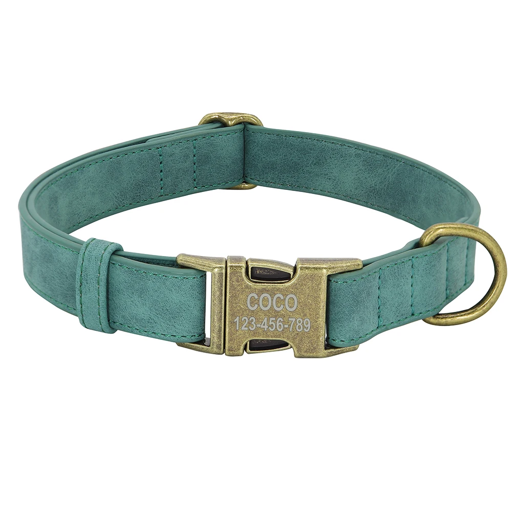 Personalized Dog Collar Customized PU Leather Dogs Collars Pet Name ID Buckle Necklace for Small Medium Large Dogs Pitbull Pug
