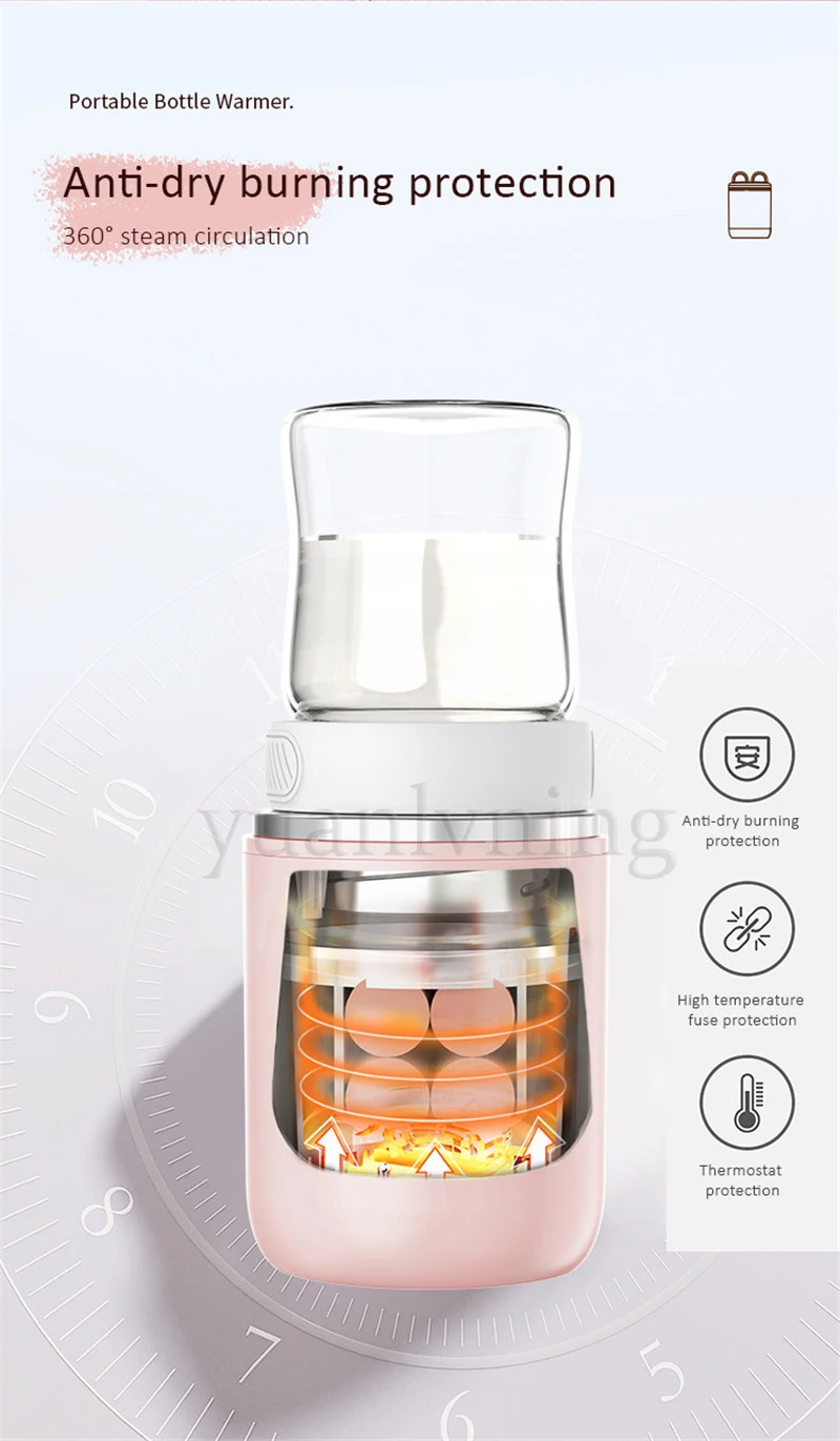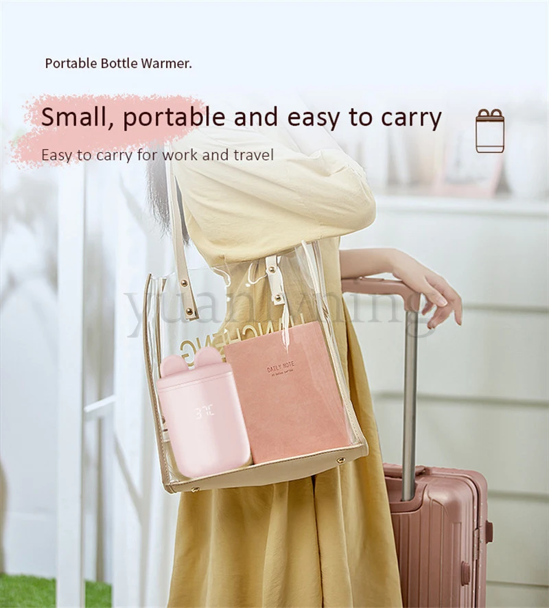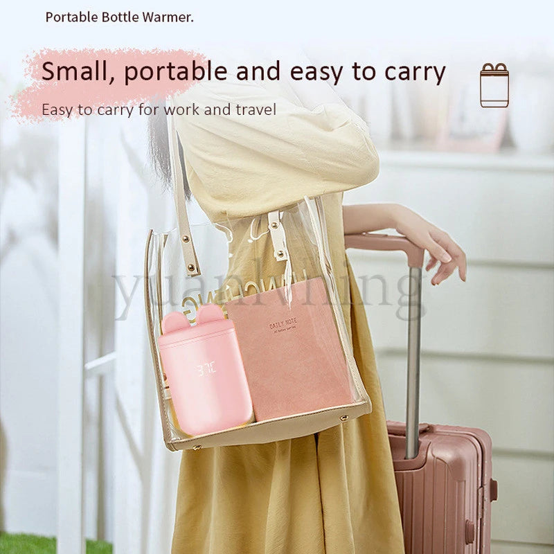 1.Portable for Travel: The portable bottle warmer for travel is perfect for warming baby's milk on the go. This portable bottle warmer with compact size (3.18x4.9in, 1.08 lb) makes it easy to fit into any bag. This travel bottle warmer is wireless and rechargeable, so you can charge it with any USB-C cable machine, like a power bank when you're outdoors. No need to find a power source