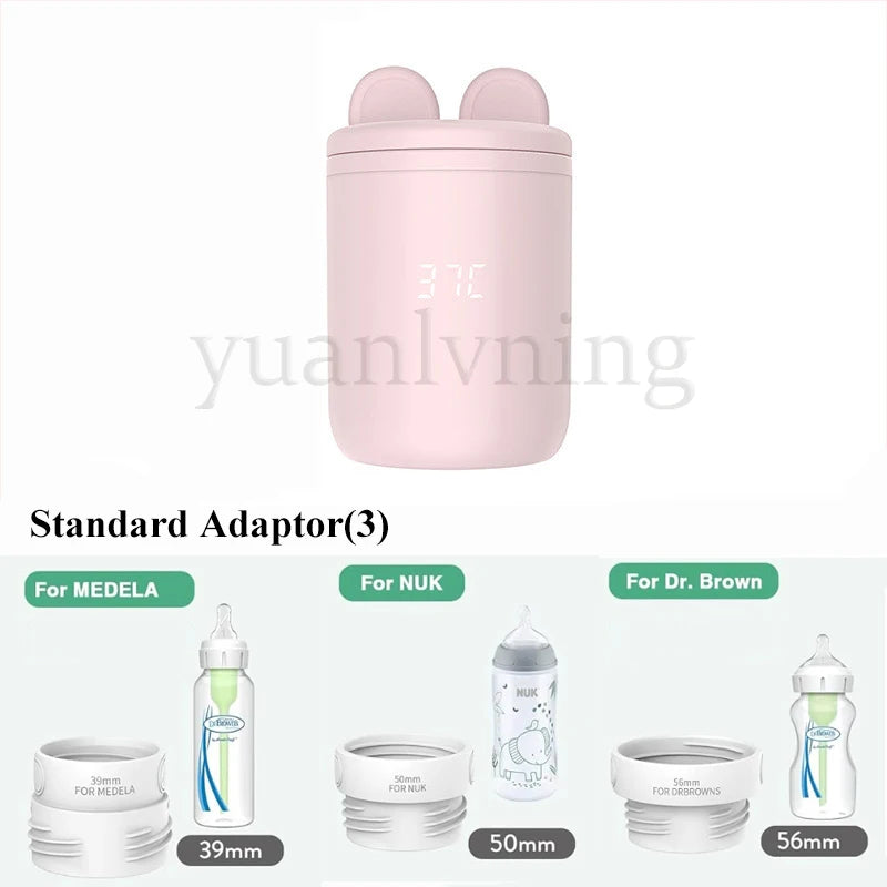 3.Designed To Fit Most Bottles: Our portable baby bottle warmer fits most major bottle brands like Philips AVENT, Dr Brown's, Medela, NUK, Tommee Tippee, MAM(39mm, 50mm, 53mm, 56mm, 60mm) and more. The adapters are made of premium, BPA-free materials for your baby's safety.(The package includes three adapters: 39mm, 50mm, and 56mm.)