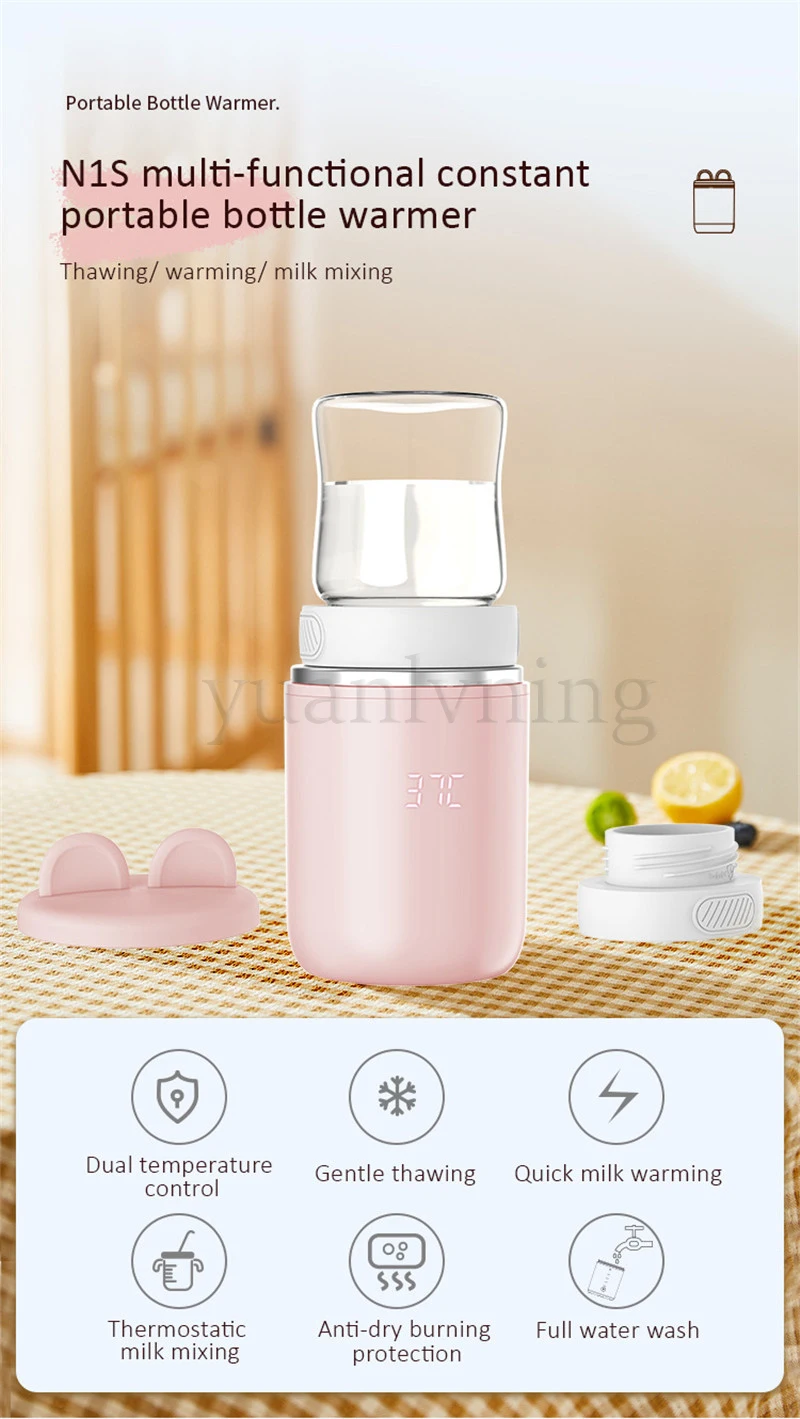 2.Fast Heat & Temperature Control: N1S baby bottle warmer portable quickly and evenly heats up your baby's milk. With 13200W fast heating, it warms up 4 oz milk to 37°C in just about 2.5 minutes. It has four temperature settings (37°C, 40°C, 45°C, 50°C) for adjustable function.