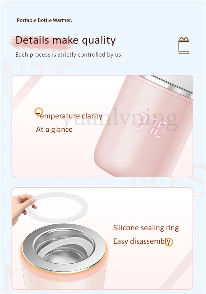 4.Leak-Proof & Easy Clean: The portable bottle warmer for breastmilk is designed to be leak-proof and water-proof, with silicone O-rings in the machine and adapters. To avoid any leakage, make sure to use the correct adapter, place the O-ring properly, and secure it tightly. It's also waterproof with an IPX6 rating and has a waterproof charging buckle with a silicone seal. You can easily clean it with a faucet, but don't soak it in water.