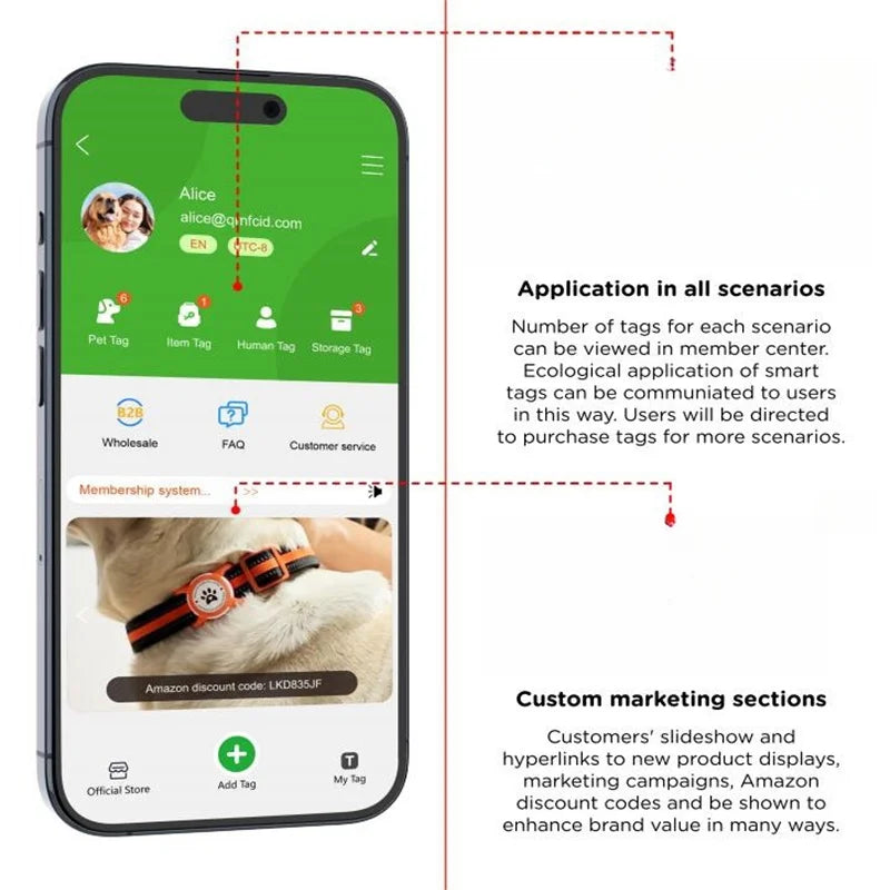 anti- lost, scan to see owner contact info, easy