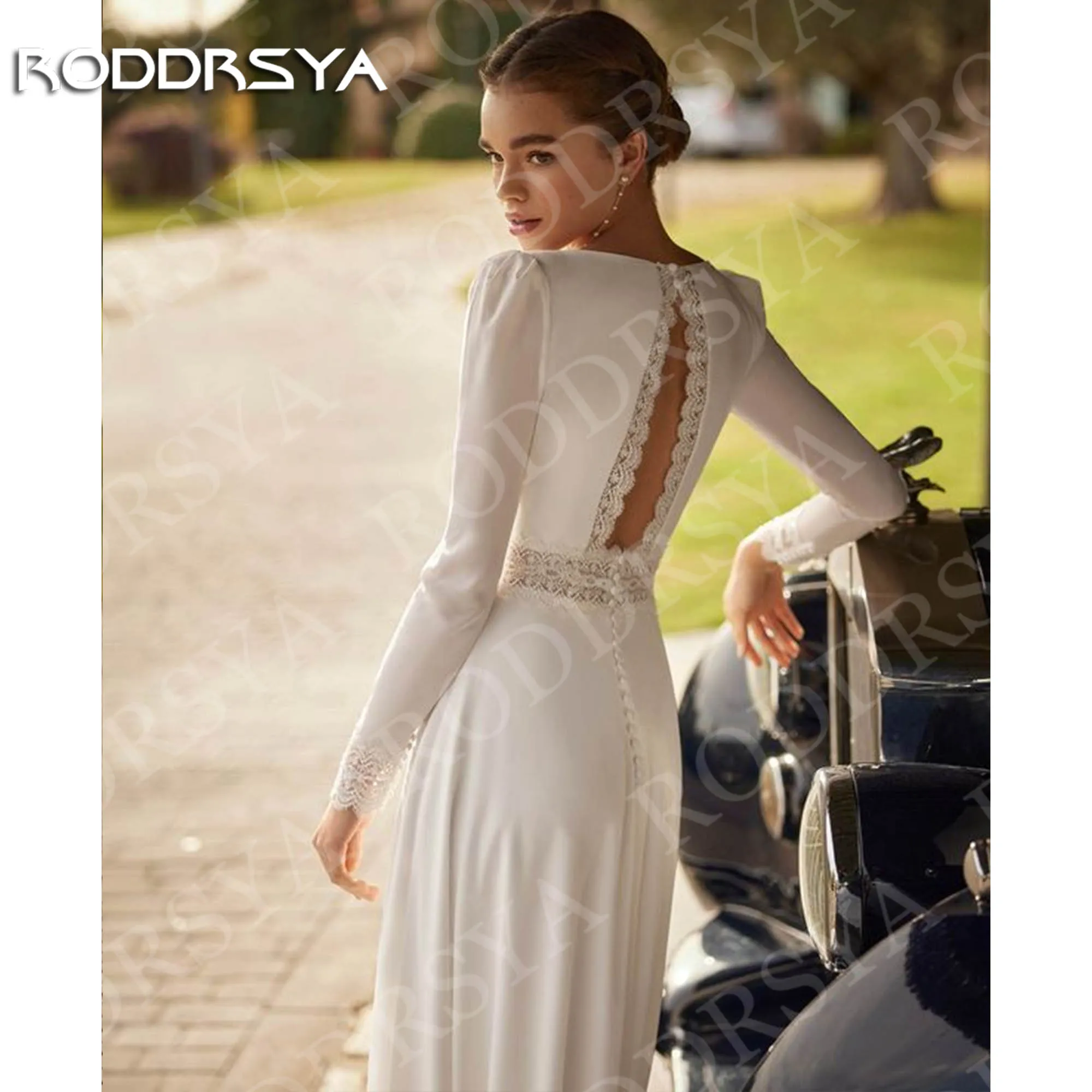RODDRSYA Square Neck Long Sleeves Woman Wedding Dresses Boho Elegant A Line Open Back Bridal Dress Customized vestido de noiva