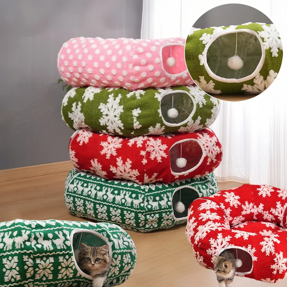 Round Donut Cat Beds Christmas House Soft Plush Pet Mat for Puppy Cushion for Cats To Hide 2 in 1 Tunnel Cats Sleeping Sofa Noel