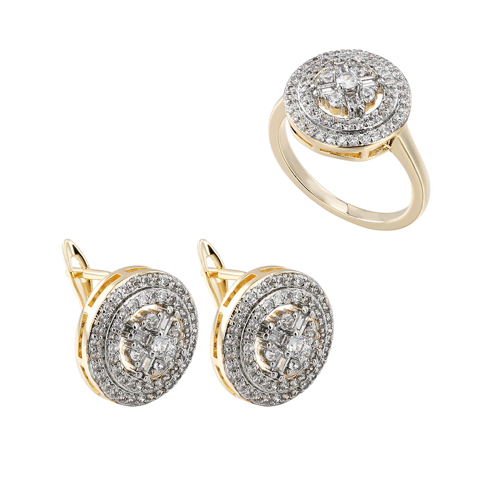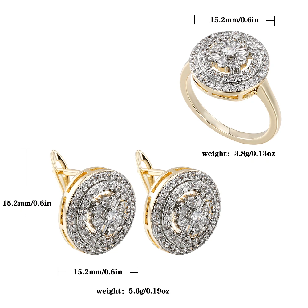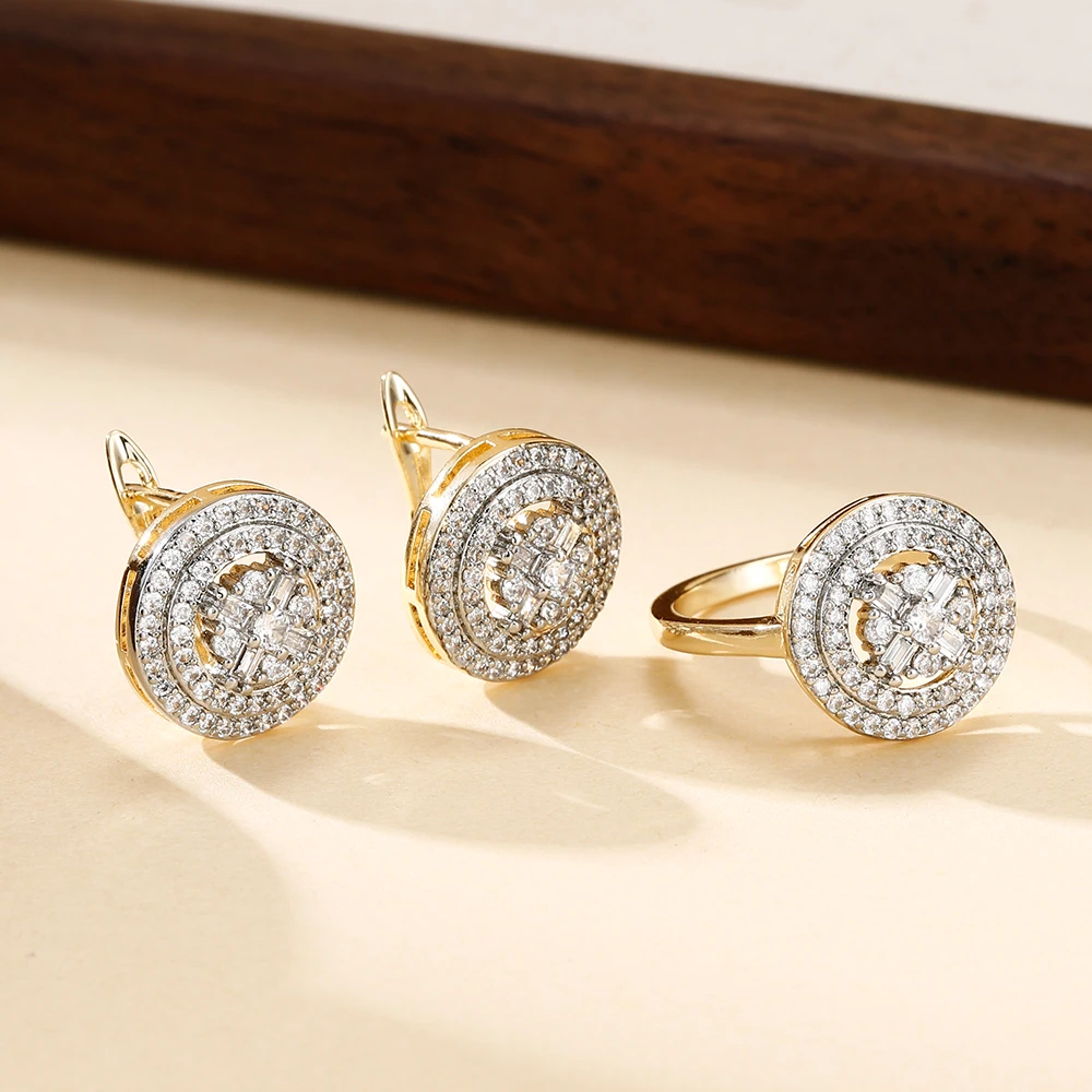 Round two-color design inlaid zircon earrings and rings set fashion jewelry holiday party banquet exquisite gift three-piece set
