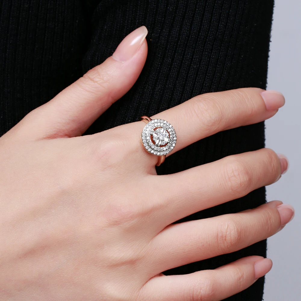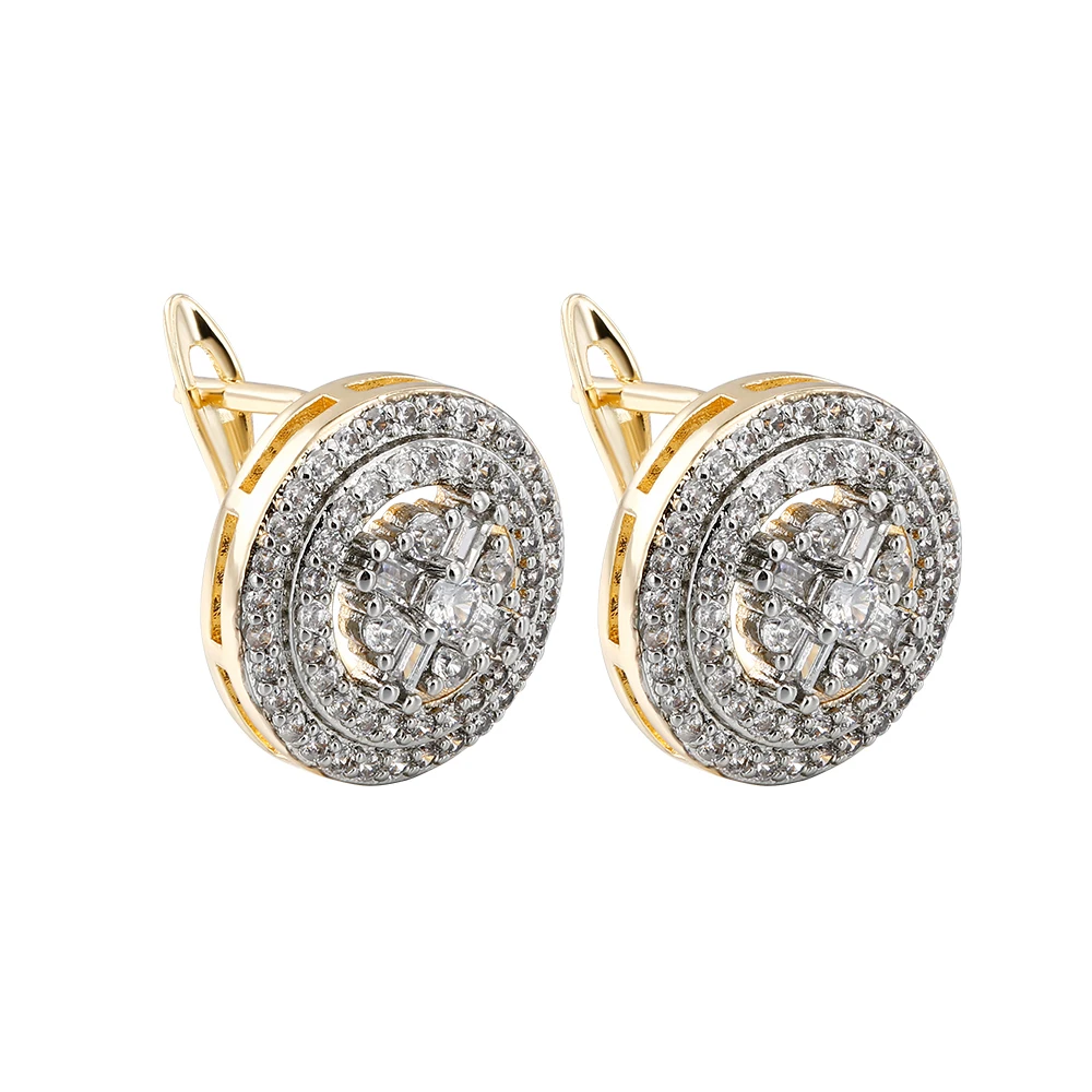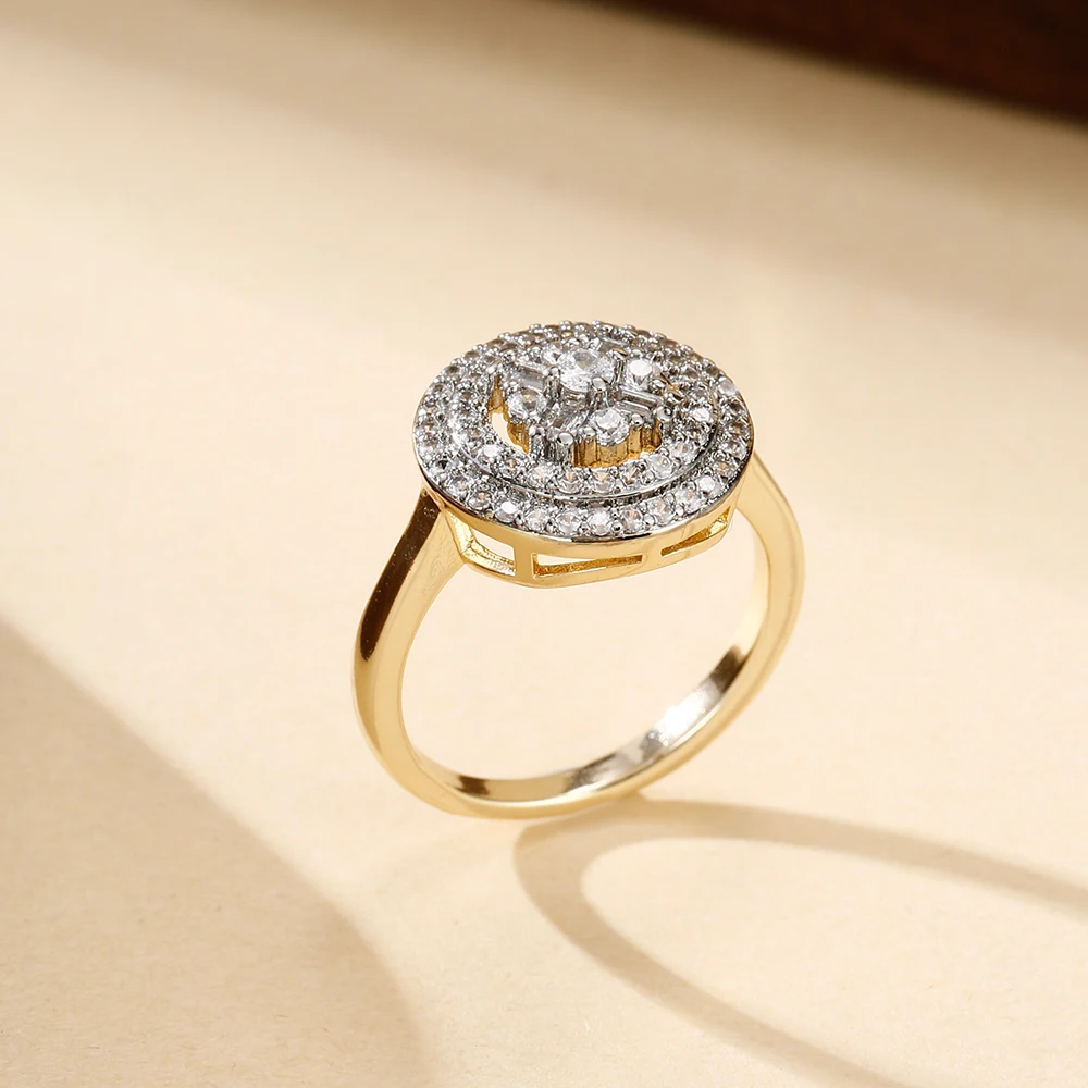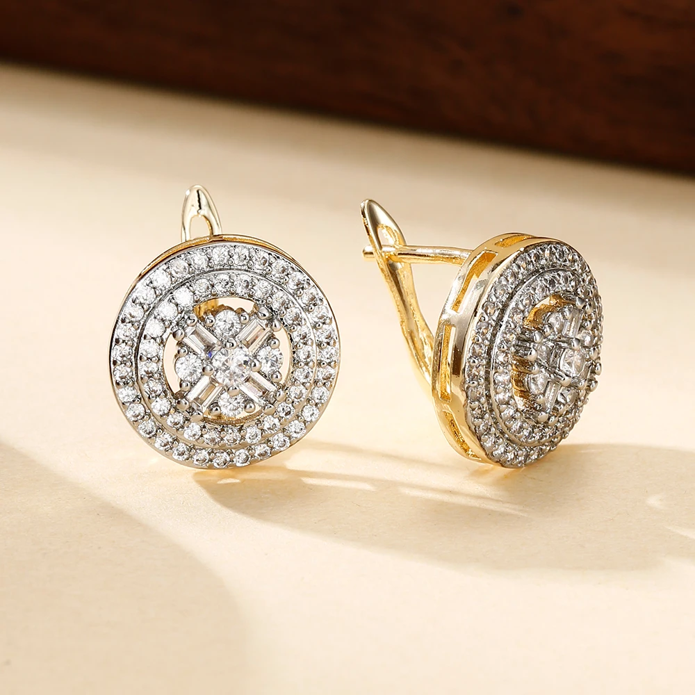 Round two-color design inlaid zircon earrings and rings set fashion jewelry holiday party banquet exquisite gift three-piece set