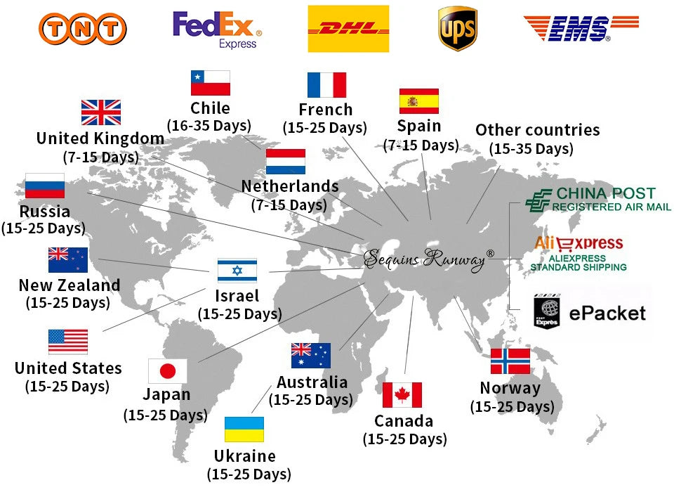 Sequins Runway Service Sequins Runway is a Chinese brand production factory, Specializing in the production of sequin Party Dresses;we can produce the clothes you want,We support OEM/ODM, You provide pictures, we can produce samples;Then, mass production according to samples,welcome to contact us. Wholesale and Dropshipping are both welcomed. For wholesale,we will offer discount or free express shipping which only takes 3-7 days to arrive. For dropshipping,we could send the goods to your customers, directly and won't leave information about us if you'd like to. Please don't worry All pictures are photos of girls wearing real clothes,Click to blue font《View All》,You can see the real pictures as well as the size chart and video;Any problem,Please click "Contact Seller",We will reply you as soon as possible How can I do if my parcel is lost in transit ? We've paid shipping INSURANCE for you before we ship your package. you just need to open dispute and apply for refund, select the dispute reason" I haven't received this package yet". AliExpress will refund to you. How can I track my parcel? You can track your parcel on the following website using your tracking number: www.17track.net/en (Copied to the browser to open) What can I do when purchase protection time is running out? If your purchase protection time is running out, please contact us and we can help you to extend it. So your money will not go to my account. | ||||||||||||||||