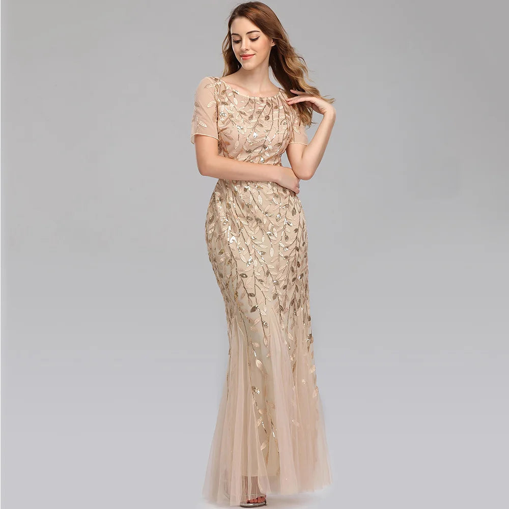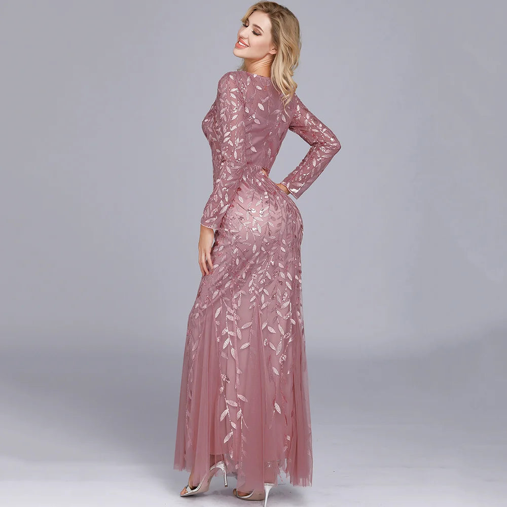 Sexy vintage Maxi Sequin cocktail Dress bridesmaid Prom Dresses for Women Casual Party Long sleeve club Bodycon Dress vestidos