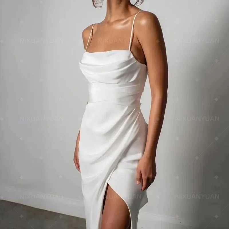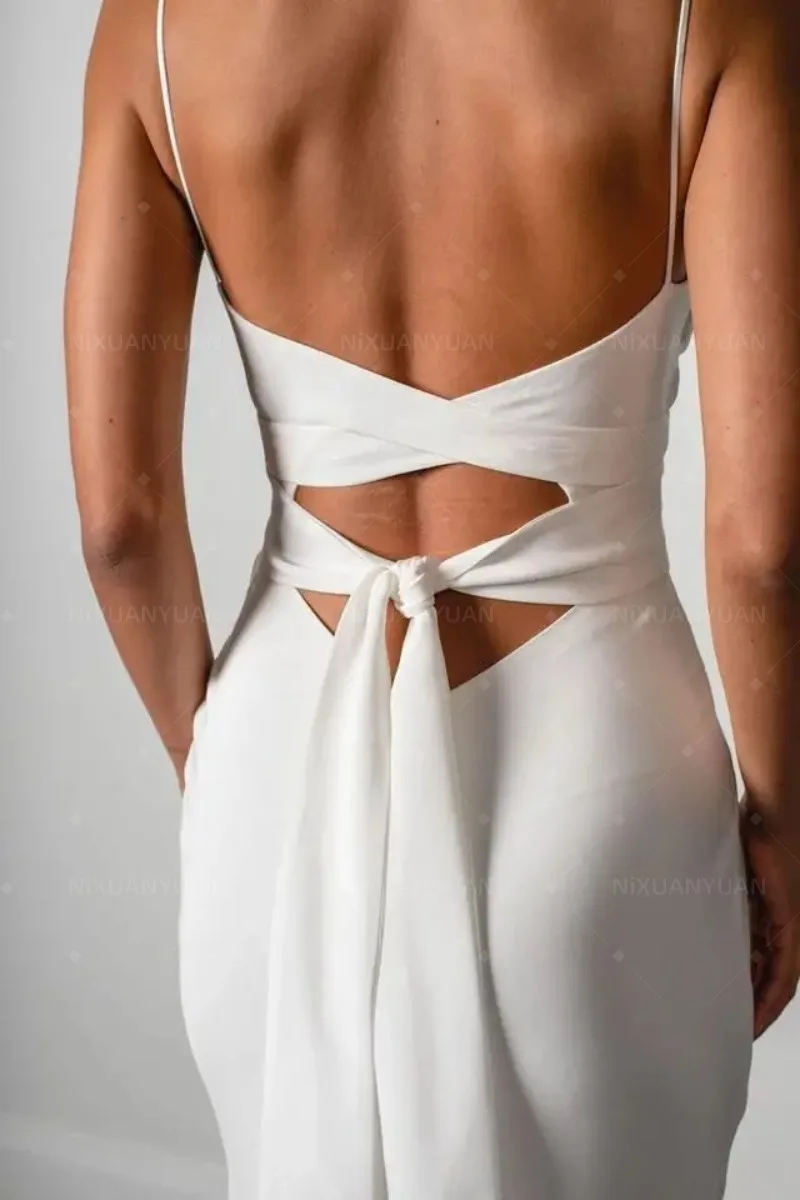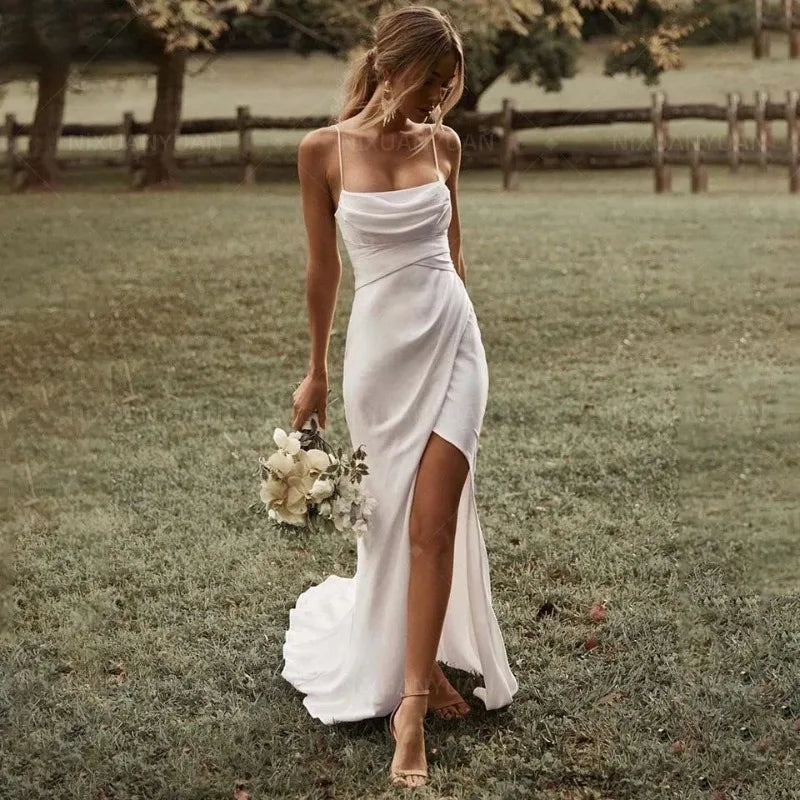 Simple Sexy Wedding Dresses Boho Bridal Dress High Slit Straps Backless Bohemian Bride Gowns Vestidos De Noiva Customized