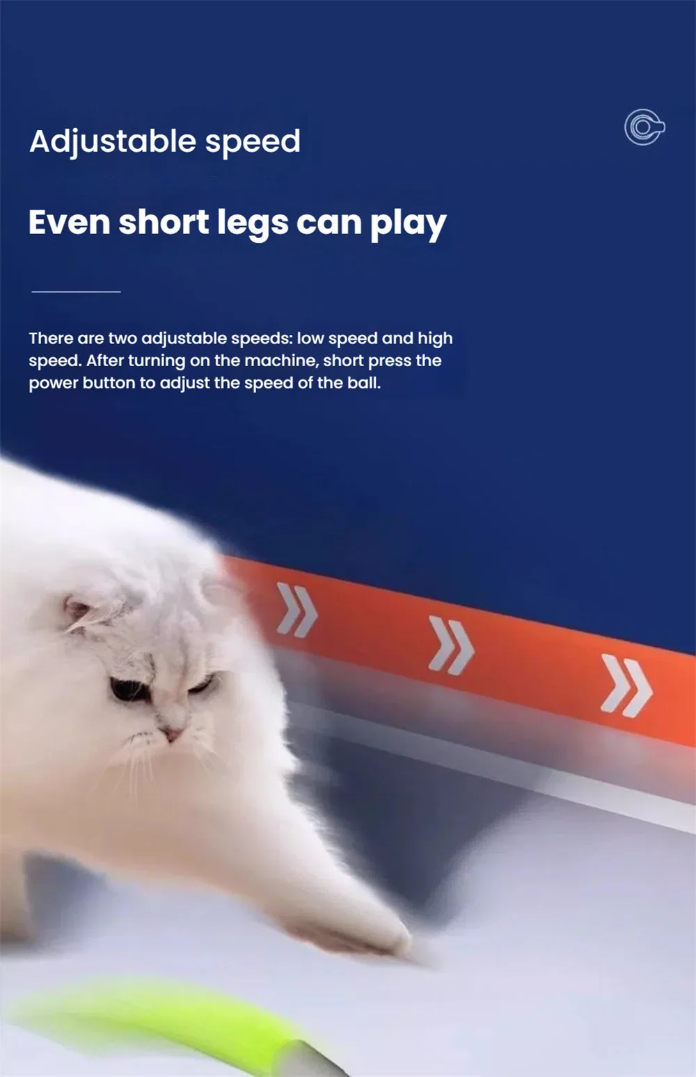 Low Speed Mode: Ideal for kittens or senior cats (0.3–0.5 m/s), indicated by light green/blue LED.