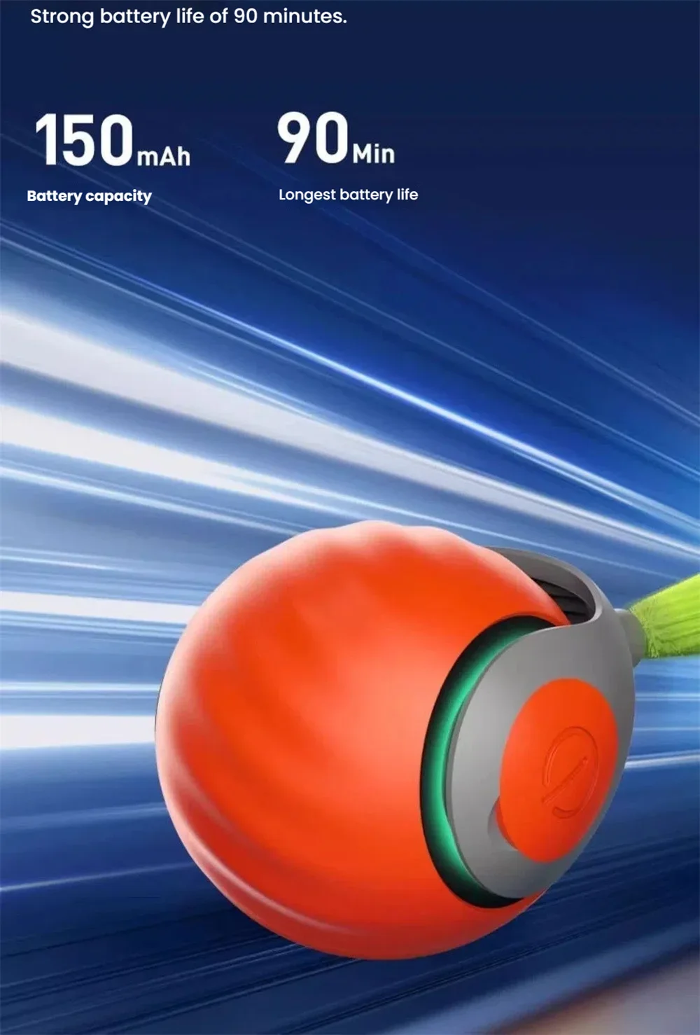 High Speed Mode: Suitable for adult pets (max 0.8–1 m/s), indicated by dark green/blue LED.
