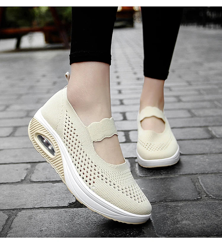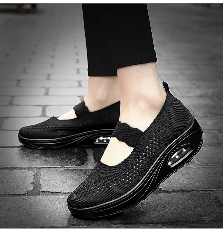 Solid Color Women Walking Shoes Air Cushion Non Slip Orthopedic Shoes Ladies' Casual Mother's Shoes Slip-On Lazy Loafers Sneaker