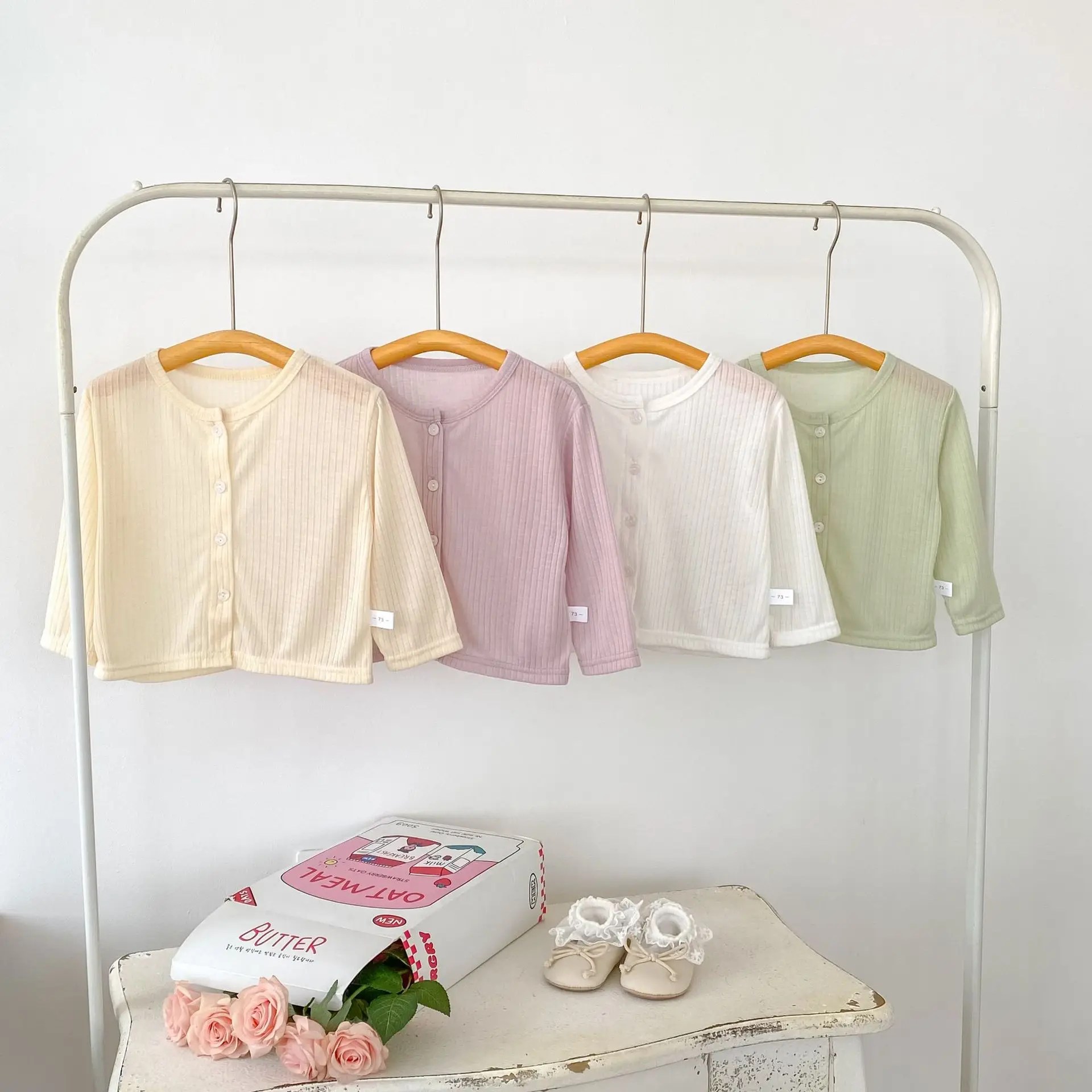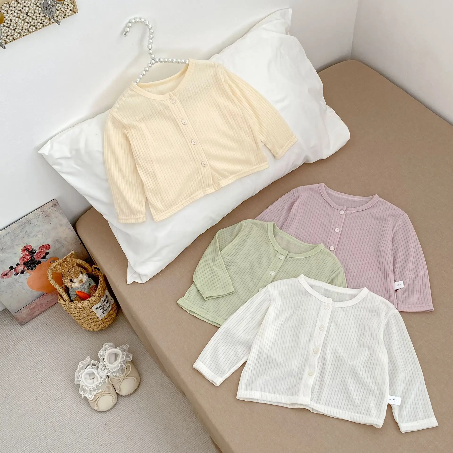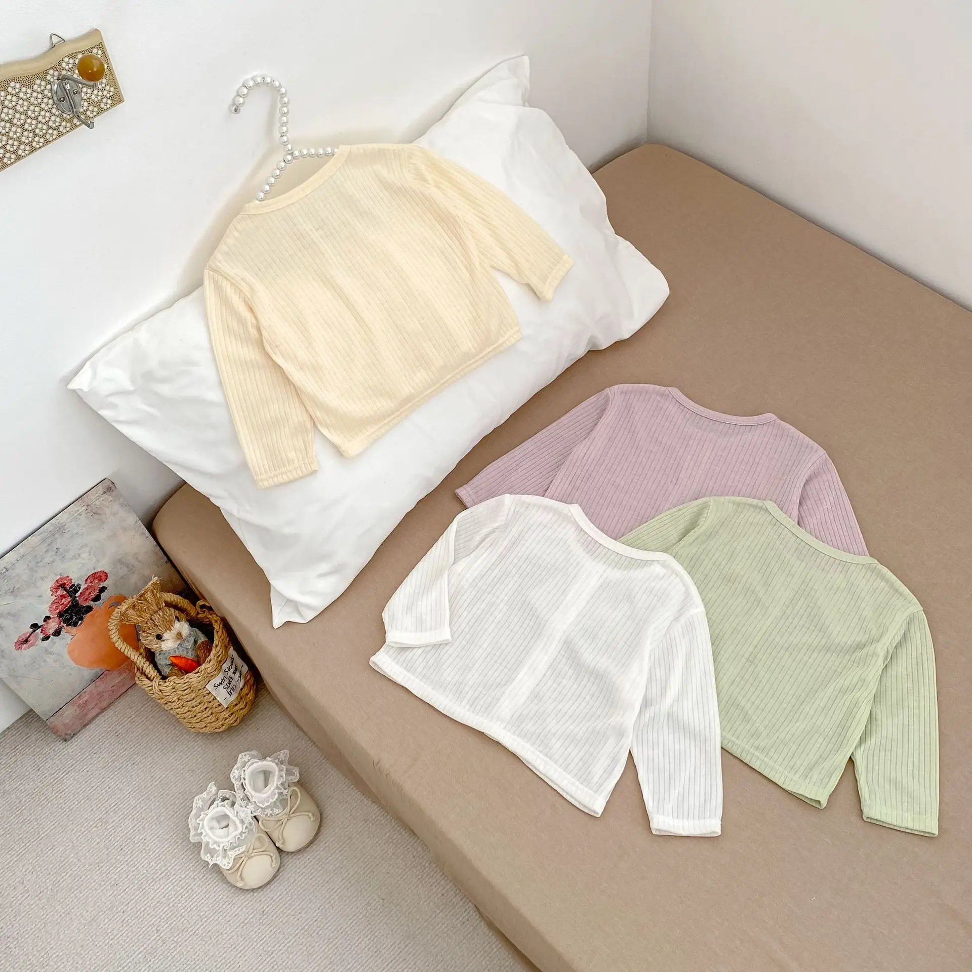 Summer Baby Girl Sunscreen Shirt Solid Color Simple Round Neck Air Conditioning Cardigan Lightweight Breathable Girl's Coat